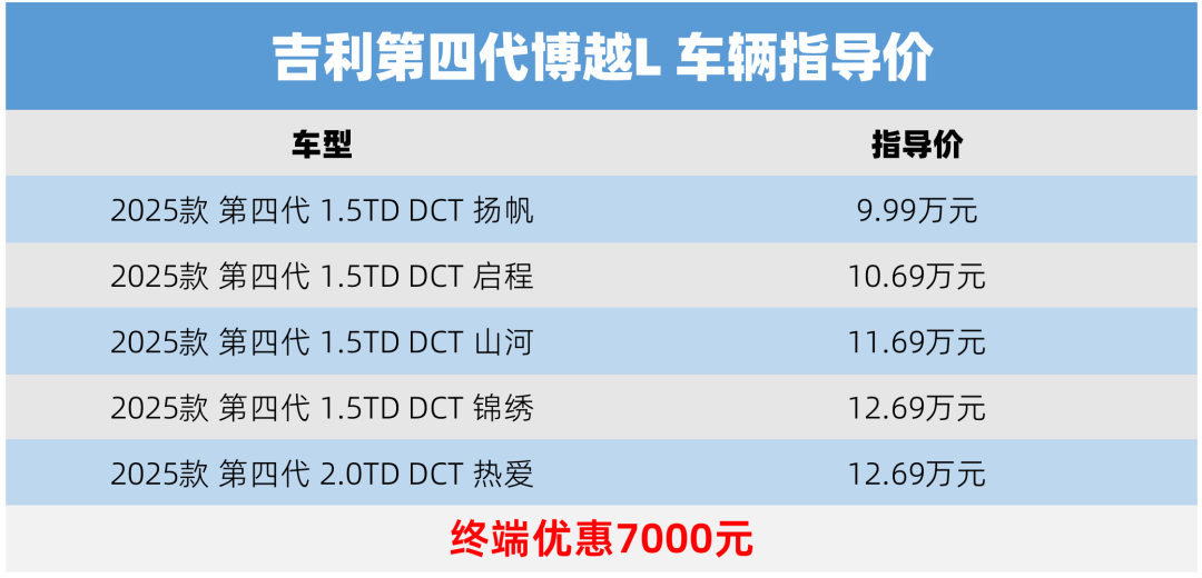 第四代博越L的价格处于10万元区间,目前我了解到终端优惠是9.29万元起。9万出头,无疑是主流家庭购车预算带。