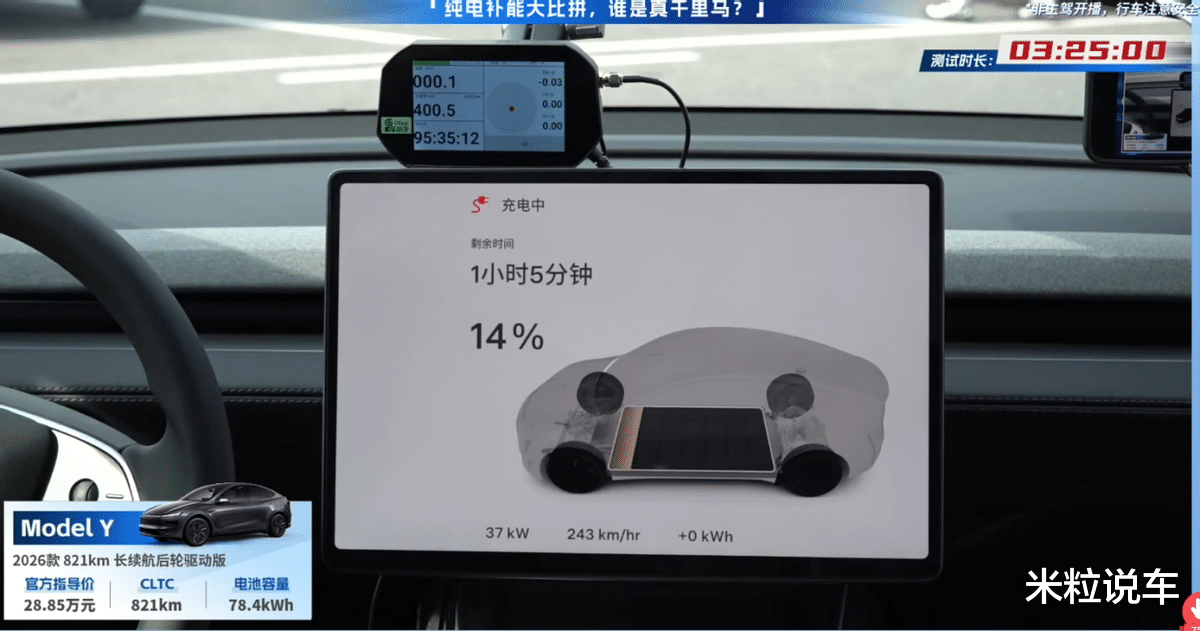 反观特斯拉Model Y,采用的是400V平台架构,充电速度相对偏慢一些。根据实测,15分钟只能补能250km,这是落后的主要原因。目前特斯拉在全国范围内快充站为2400座左右,注定这次试验要使用公共充电桩,所以补能速度会进一步降低。