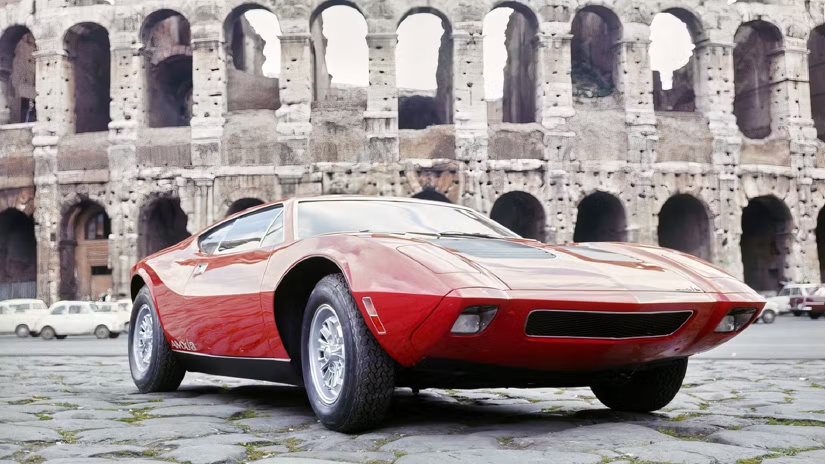 1970年3月23日,AMX/3在罗马正式发布,比德托马索潘泰拉的亮相早了一天,精准的时间点让它瞬间占据头条,也让外界第一次正视AMC的超跑野心。而它的“核心杀器”,正是那台藏在座椅后的390立方英寸V8引擎——这台四桶化油器加持的美式大排量引擎,在蒙扎测试车上爆发出340马力、429磅-英尺扭矩,匹配意大利OTO Melara四速变速箱+后置变速桥,把美式肌肉车的“低转大扭矩”特质发挥到极致,无需高转速就能获得强烈的推背感,与兰博基尼Miura的高转风格截然不同,是独一份的“美式中置超跑声浪”。