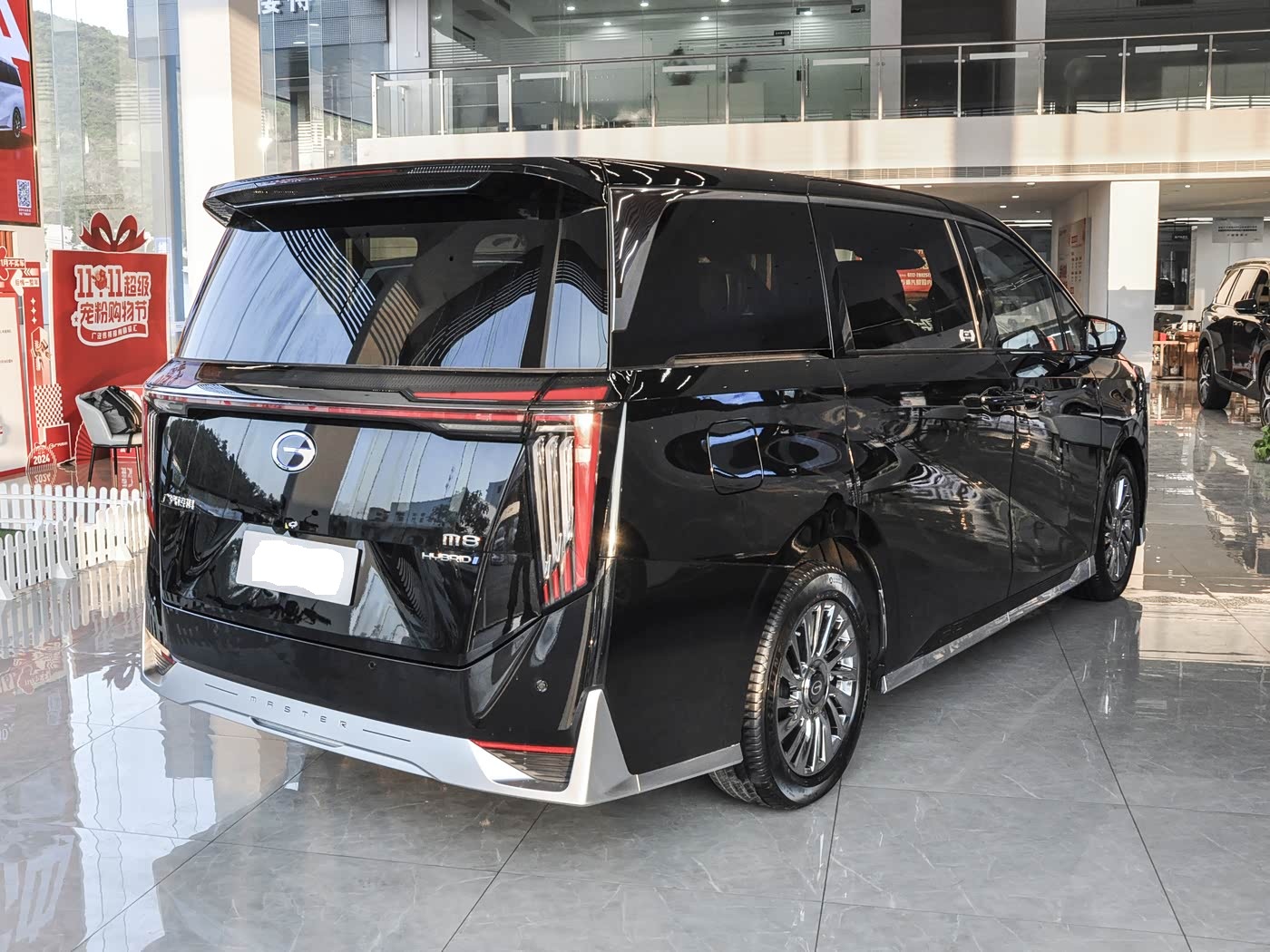 再来看车尾部分,车尾设计延续前脸的中式豪华风格,整体造型方正立体,兼顾实用性与辨识度,完美契合MPV的核心需求。车尾最亮眼的是“7”字形LED尾灯,与车头日行灯形成呼应,点亮后视觉效果醒目,夜间行驶辨识度极高,同时加入熏黑处理,增添运动气息。车尾中间配备镀铬饰条,连接两侧尾灯,拉伸横向视觉宽度,让车尾显得更加规整大气。下方隐藏式排气布局搭配镀铬装饰件,弱化MPV的笨重感,提升精致度。