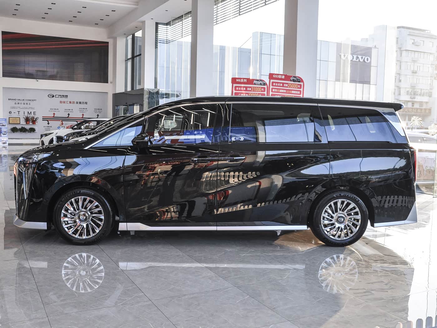 再来看车身侧面部分,车身侧面采用悬浮车顶设计,BCD柱隐藏式处理与18英寸星翼轮毂相配合,营造出轻盈动感的视觉效果。双侧电动滑移门轨道巧妙隐藏于车窗下沿,兼顾商务场合的便捷性与家庭出行的实用性。尺寸方面,新车车身长度5212mm,轴距3070mm,提供2+2+3的七座布局,第三排座椅支持电动调节,彻底解决同车型第三排拥挤痛点。