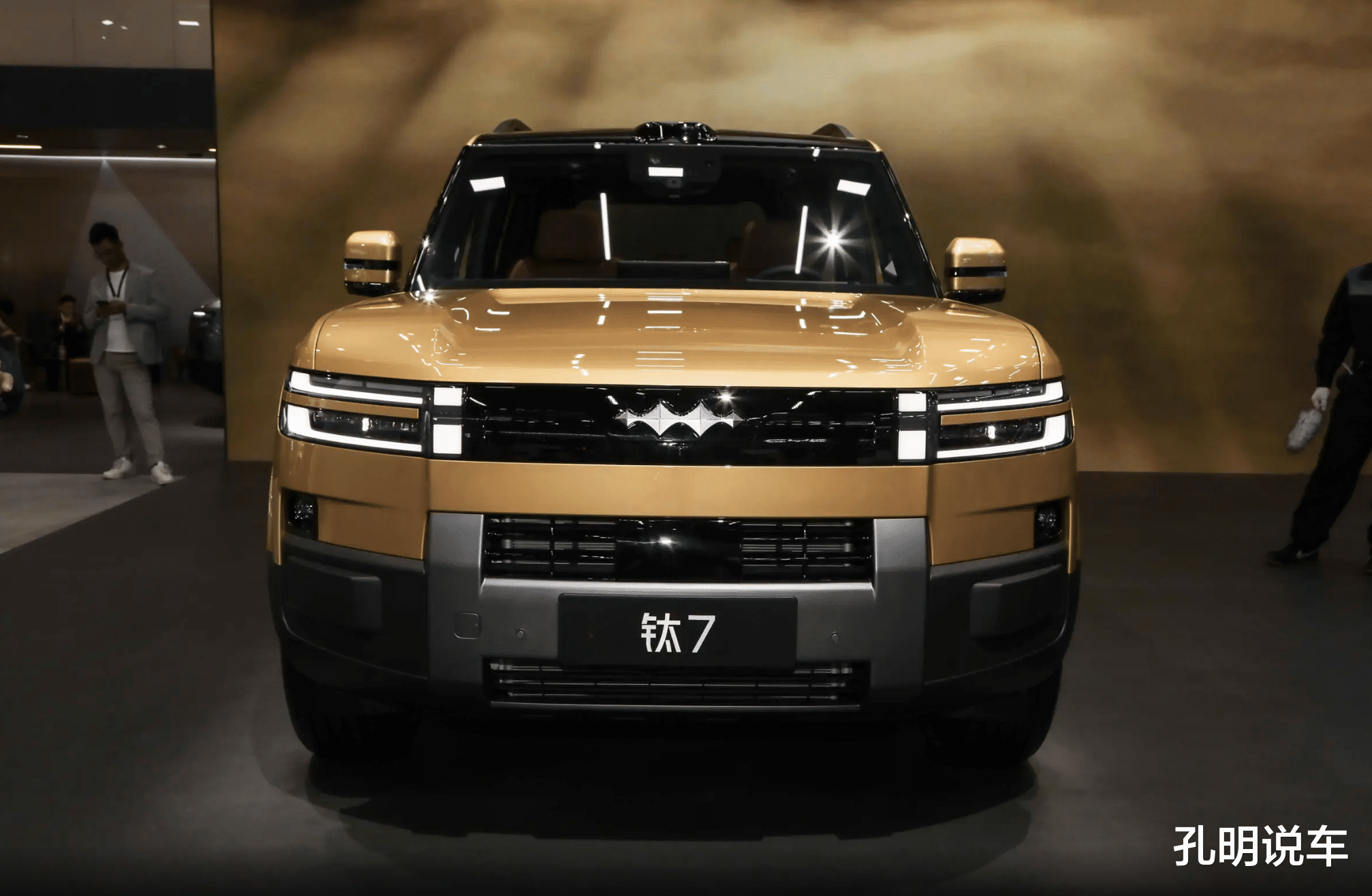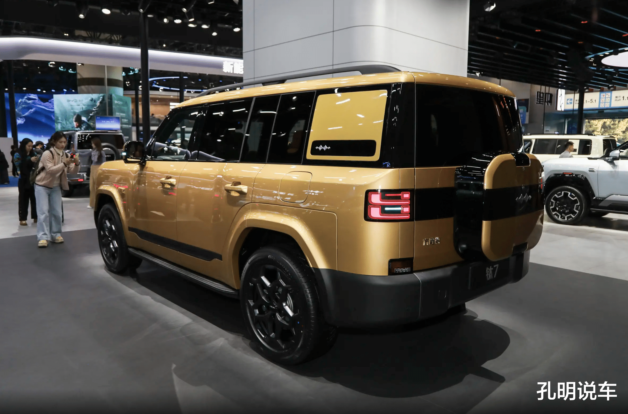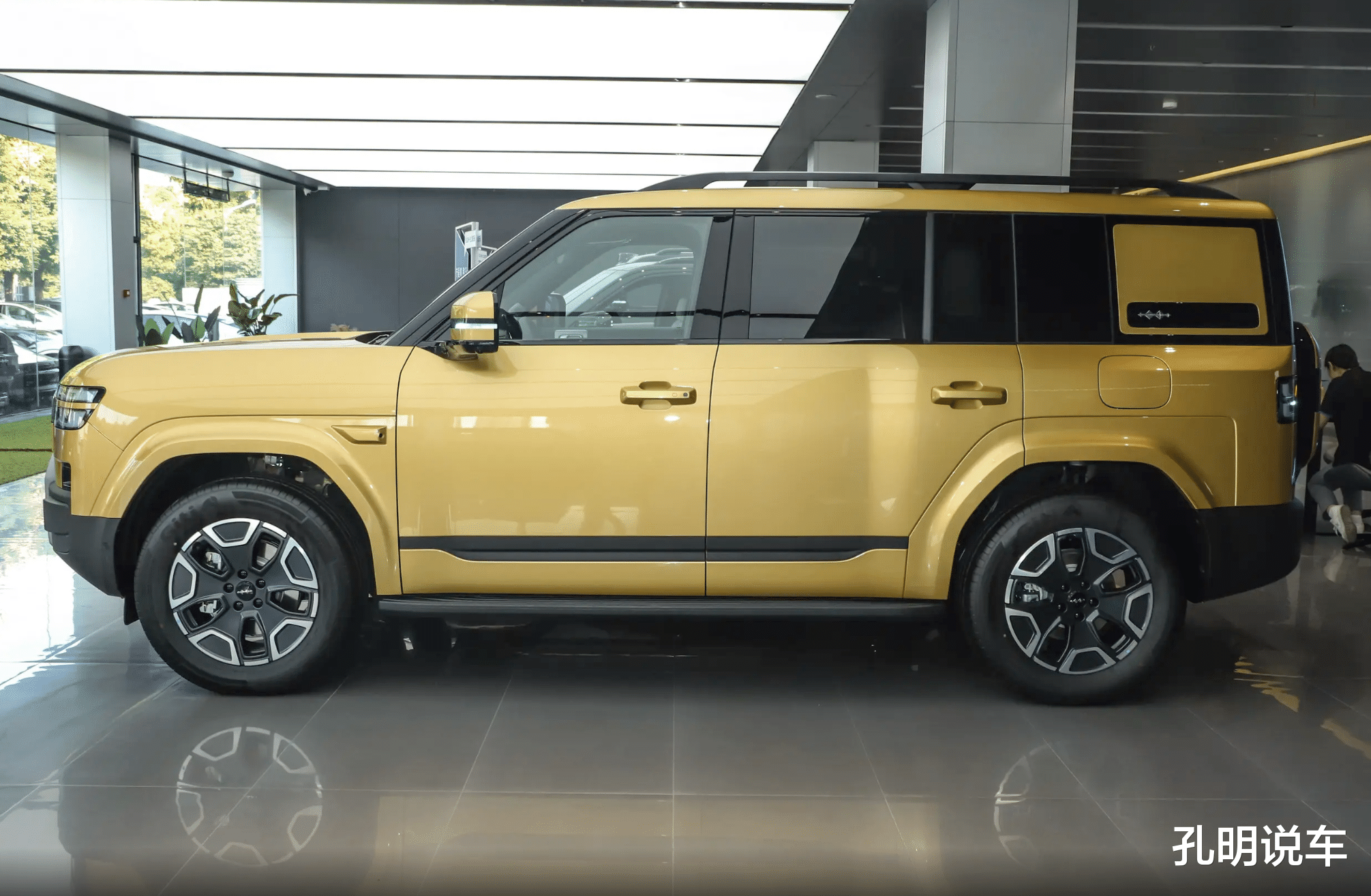 之所以这款车上市之后能够迅速走红,其实和设计造型关系也很大,尤其车身侧面看确实显得很敦实,从头到尾方盒子棱角线条也比较到位,尾部也提供有比较硬派的小书包装饰。特别是这款车的头部和尾部处理反而看起来比方程豹的硬派越野系列要更自然一些。