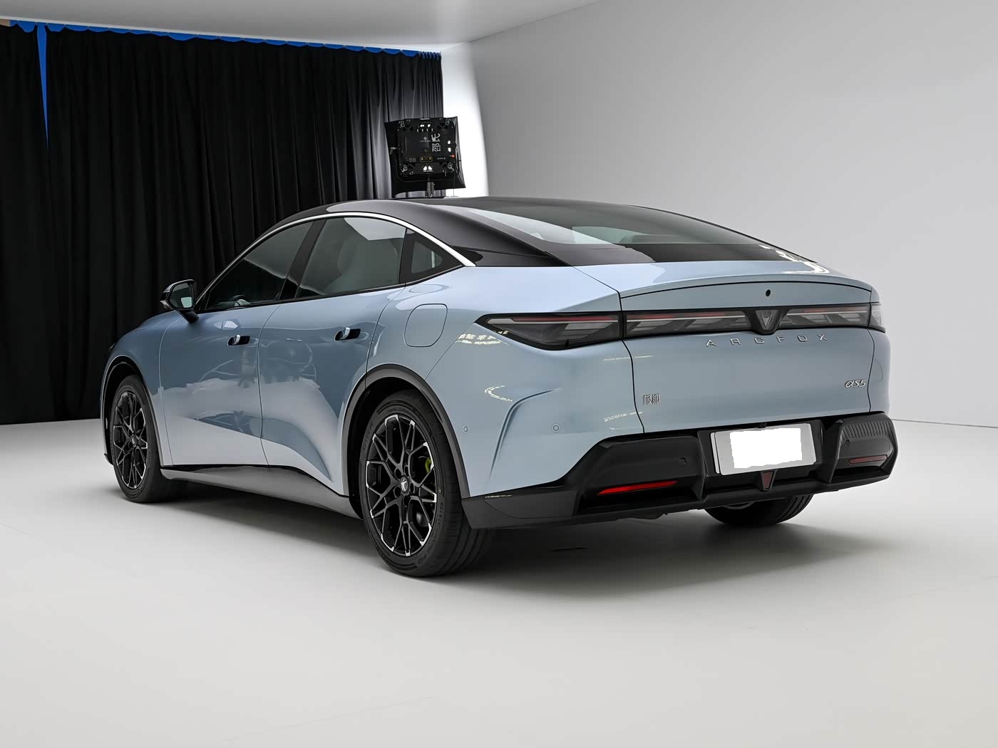 再来看车尾部分,车尾设计延续车头的科技运动风格,整体造型饱满规整,细节处理细腻到位,兼顾实用性与精致感。贯穿式LED尾灯是车尾的核心亮点,灯带中央嵌入可点亮的极狐品牌标识,灯腔内部采用分段式光源设计,点亮后呈现连贯的流光效果,夜间行驶时辨识度拉满,同时与车头大灯形成呼应,提升整车设计统一性。车尾上方配备可选装的电动尾翼,进一步强化运动氛围,同时优化高速行驶时的空气动力学表现。下方采用隐藏式排气布局(增程版为隐藏式),让车尾看起来更加整洁利落。