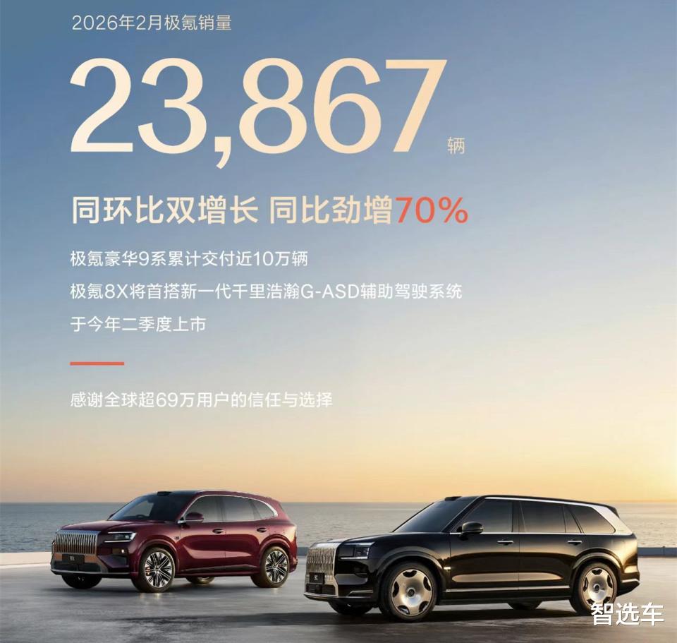 虽然2月份车市整体遇冷,但仍有少数品牌交出了惊喜答卷。吉利旗下的极氪品牌堪称2月“最大黑马”,交付量达到23867辆,实现同比70%、环比0.06%的双增长,高客单价的极氪9X持续领跑50万级大型SUV市场,累计交付已超3万辆。