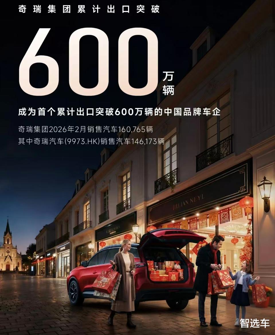 众所周知,出口一直是奇瑞集团的优势所在,从2025年6月累计出口量超500万辆,到今年2月累计出口量超600万辆,仅用时8个月。