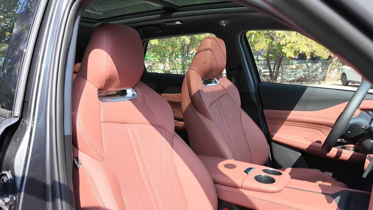 座椅的舒适性也做了升级,前排座椅有8点位的按摩功能,还有通风和加热,跑长途的时候能缓解不少疲劳,副驾还有58度可调的腿托,家人坐车也能更舒展。