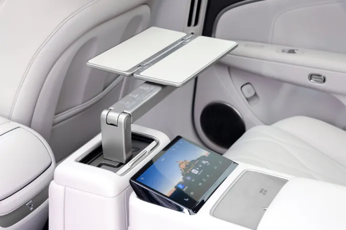 内饰方面,采用环抱式座舱设计,并配备三辐式多功能方向盘,二排设计“2合1座椅”,可放下后排带有储物空间、多功能屏幕的中央扶手,变为四座车。配置方面,搭载SDC电磁悬架、鸿蒙座舱5和后排隐私玻璃等,并将搭载ADS4.1。
