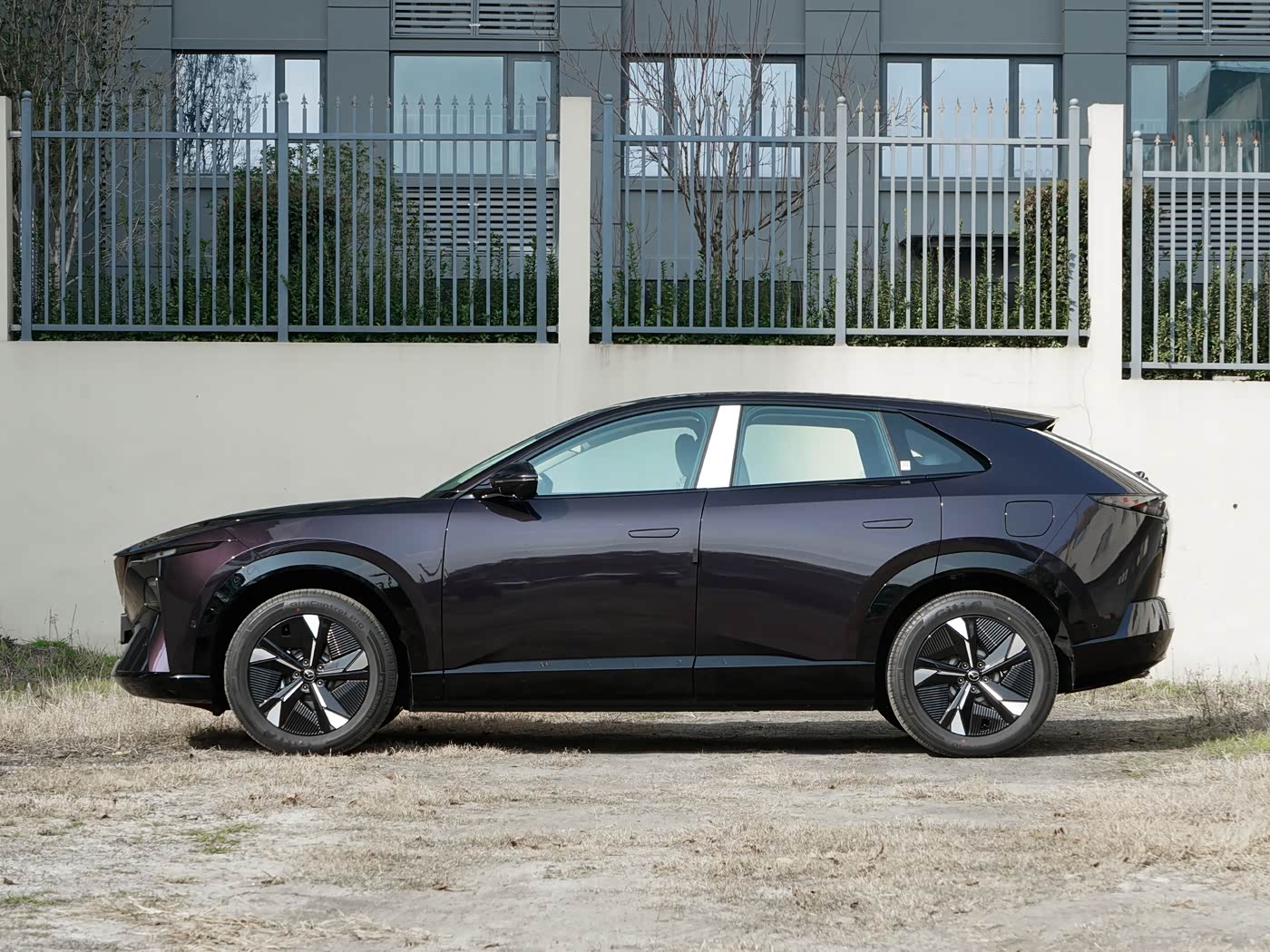 再来看车身侧面部分,马自达EZ-60的长宽高分别为4850/1935/1620mm,轴距达到了2902mm,越级的轴距为车内空间奠定了良好基础。侧面采用下宽上窄的流线型设计,配合溜背式的车顶线条,营造出强烈的运动感。隐藏式电动门把手与无框车门的搭配,不仅提升了整车的精致度,更有效降低了风阻。 全车多达9处的风道设计是一大亮点,从机舱盖、前包围到D柱的镂空风道,不仅造型独特,更能在高速行驶时为后轴提供下压力,提升车辆的操控稳定性。