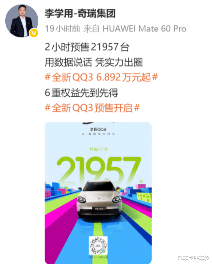 据悉,在盲订阶段,QQ3已经收获了超6.1万台订单,预售启动仅2小时,订单量就超2万台,虽然其中或许有情怀滤镜和低门槛盲订的推动,但也足以说明,市场对这台经典复活的车型抱有极高的期待。