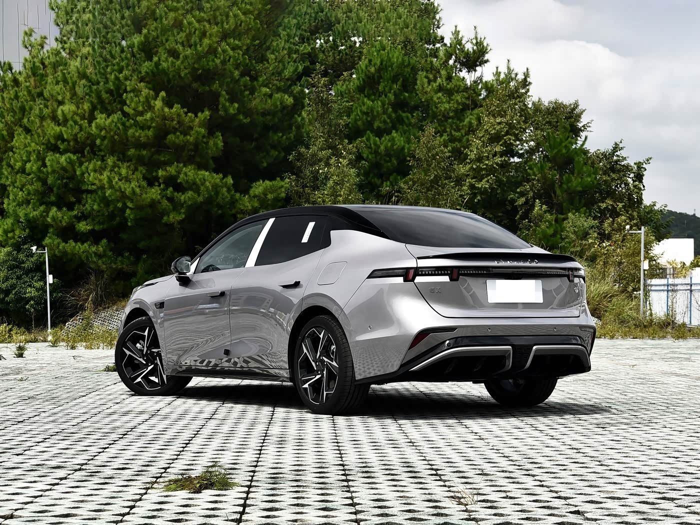再来看车尾部分,领克07 EM-P碳纤维尾翼版的最大亮点无疑是新增的大尺寸碳纤维后扰流板。这款尾翼采用两端上扬的独特造型,不仅大幅提升了视觉冲击力,更能在高速行驶时提供额外下压力,增强车辆的稳定性。 尾灯采用晶体流线造型,与车头日行灯相呼应,点亮后辨识度极高。车尾下方的扩散器设计,进一步强化了运动感。整体来看,车尾造型简洁干练,与车头、车侧的设计风格统一。