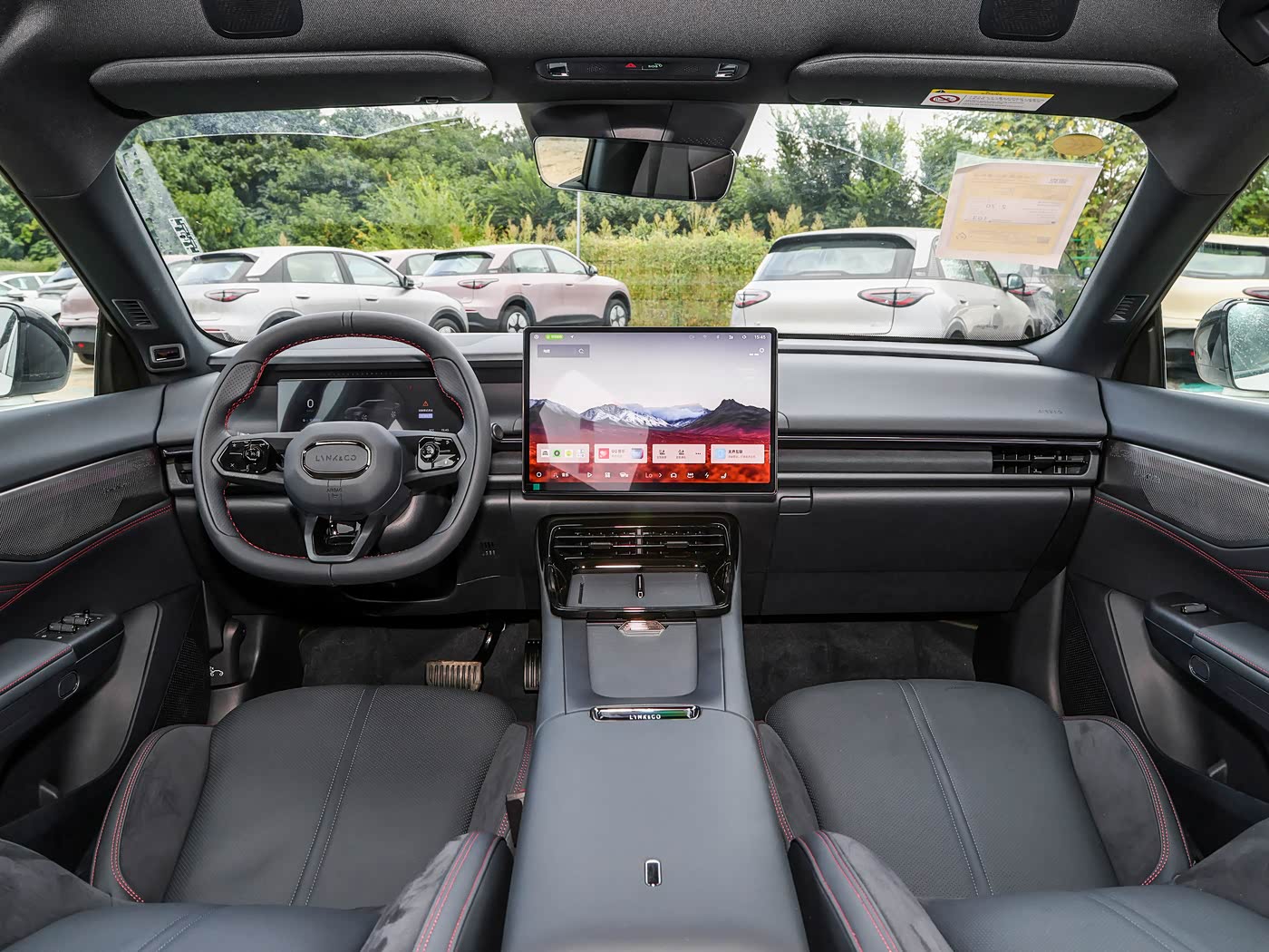 进入车内,碳纤维尾翼版延续了领克07 EM-P系列的豪华布局,同时加入专属运动元素,整体采用上深下浅的配色方案,多处细节加入亮黑色饰板与镀铬饰条点缀,智能化与实用性配置拉满,中控台配备12.3英寸全液晶仪表盘与15.4英寸2.5K超窄边框中控屏,组成双联屏设计,内置LYNK Flyme Auto 2魅族车机系统,搭配高通骁龙8295芯片,操作流畅不卡顿。空间表现十分出色,4门5座布局搭配2843mm的长轴距,让前后排空间极为充裕。身高180cm的体验者坐进前排,调整好驾驶位后,头部空间剩余一拳,视野开阔。