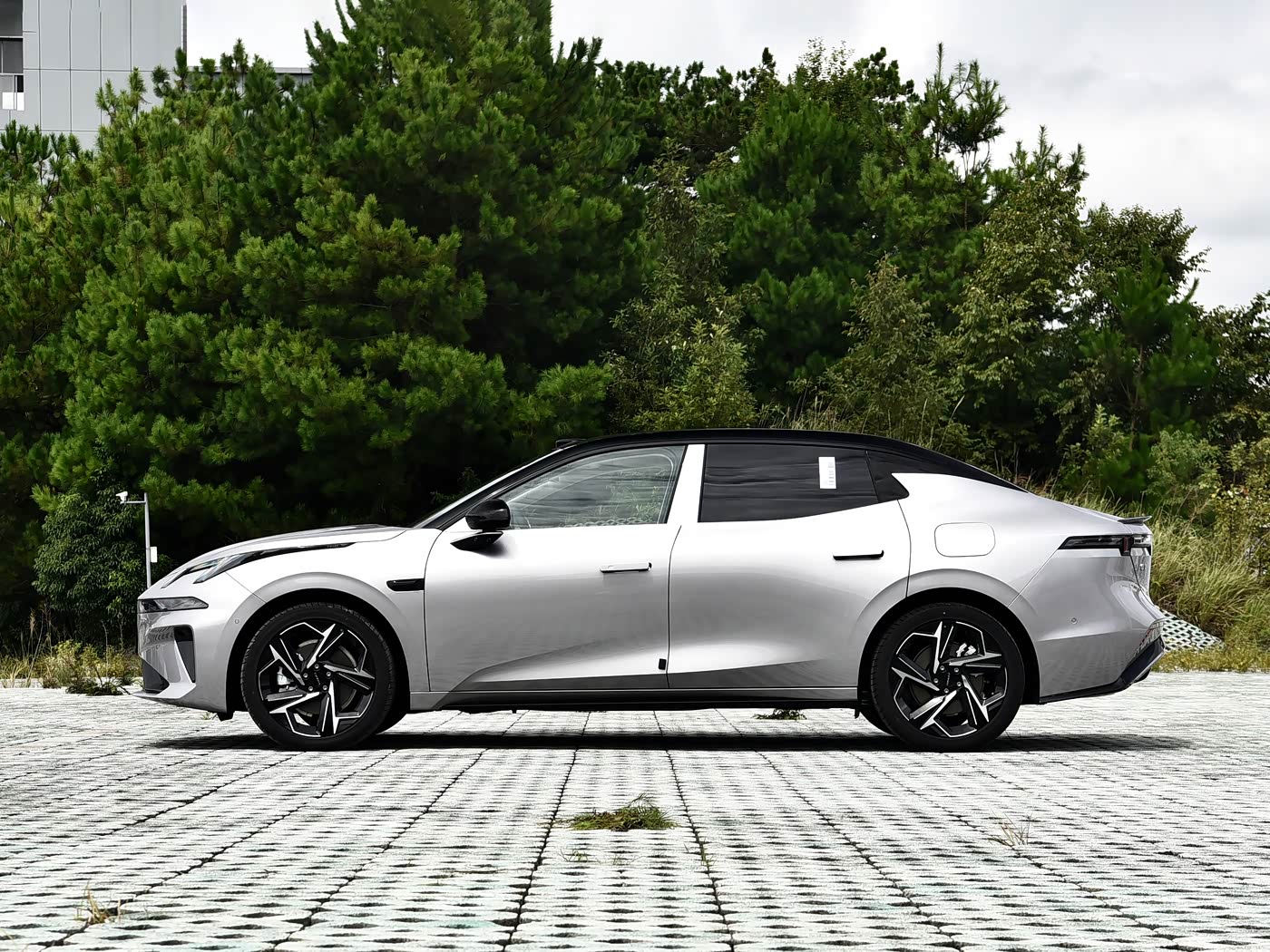 再来看车身侧面部分,领克07 EM-P碳纤维尾翼版的长宽高分别为4835MM、1900MM、1480MM,轴距达到2843MM,在中型轿车中属于主流水平,为车内空间奠定了良好基础。 车侧线条简洁流畅,硬朗的腰线从前翼子板贯穿至车尾,搭配C柱快速上扬的反向鲨鱼鳍造型,营造出一种向前俯冲的运动姿态。隐藏式门把手、无框车门以及19英寸熏黑运动轮毂,进一步强化了整车的运动氛围。同时,隐私玻璃的配备也提升了车内乘客的私密性与整车的高端质感。