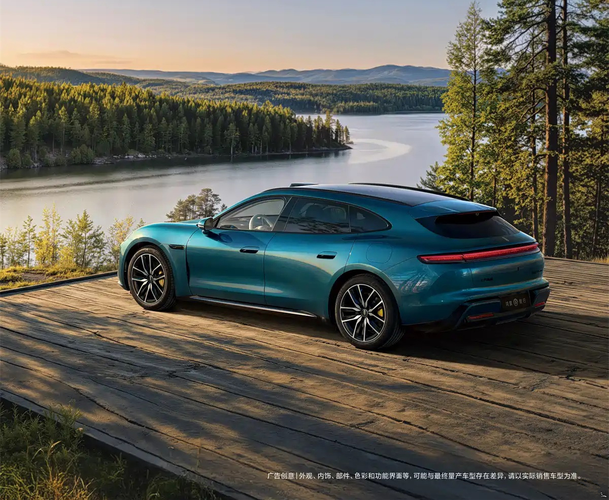 我们可以看到此次拍摄到的尚界Z7T的实车毫无伪装覆盖,它的车身风格确实很优雅,采用的是较为激进的风格打造,还搭配了很多非常柔和的线条和轮廓,组成了很有绅士风度的造型。新车的车顶采用了大幅下沉式的效果,车窗尾端采用了像抛物线一样的设计,后翼子板的位置很突出,侧面的中间倒是很平和,采用半隐藏门把手的设计,车底部是突出的包围。它的后挡风玻璃很小,顶端有扰流板,还有贯穿式的双层尾灯组的布局,尾部中间有凹槽设计,最底端是突出的保险杠。其实,尚界Z7T的车尾部从后方看更能够看出特点来,它的上方采用的是较窄的设计,下半部分采用的是很宽的轮廓,最底端显得更厚重一些,轿跑元素更加明显。