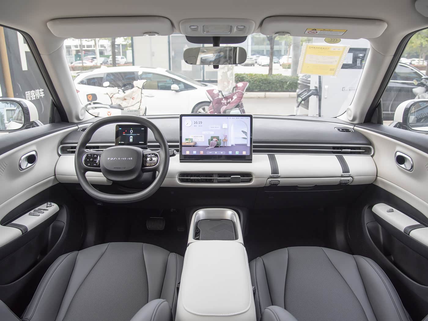 进入车内,东风纳米01的内饰主打精致实用与舒适便捷,以“都市精致移动城堡”为设计理念,整体风格简约清新,质感出众,方向盘采用圆润造型,皮质包裹,握感舒适,支持上下调节,方便驾驶者找到舒适坐姿,座舱核心由全液晶仪表与悬浮式中控屏组成,搭载智能车机系统,支持语音控制、手机互联等功能。空间方面,新车采用5门5座布局,2663mm的长轴距让车内空间表现突出,身高175cm的体验者调整前排座椅后,头顶仍有充足空间;保持前排坐姿,后排膝部距离前排座椅靠背达两拳余量,后排地台纯平,中间乘客腿部舒适性不受影响。