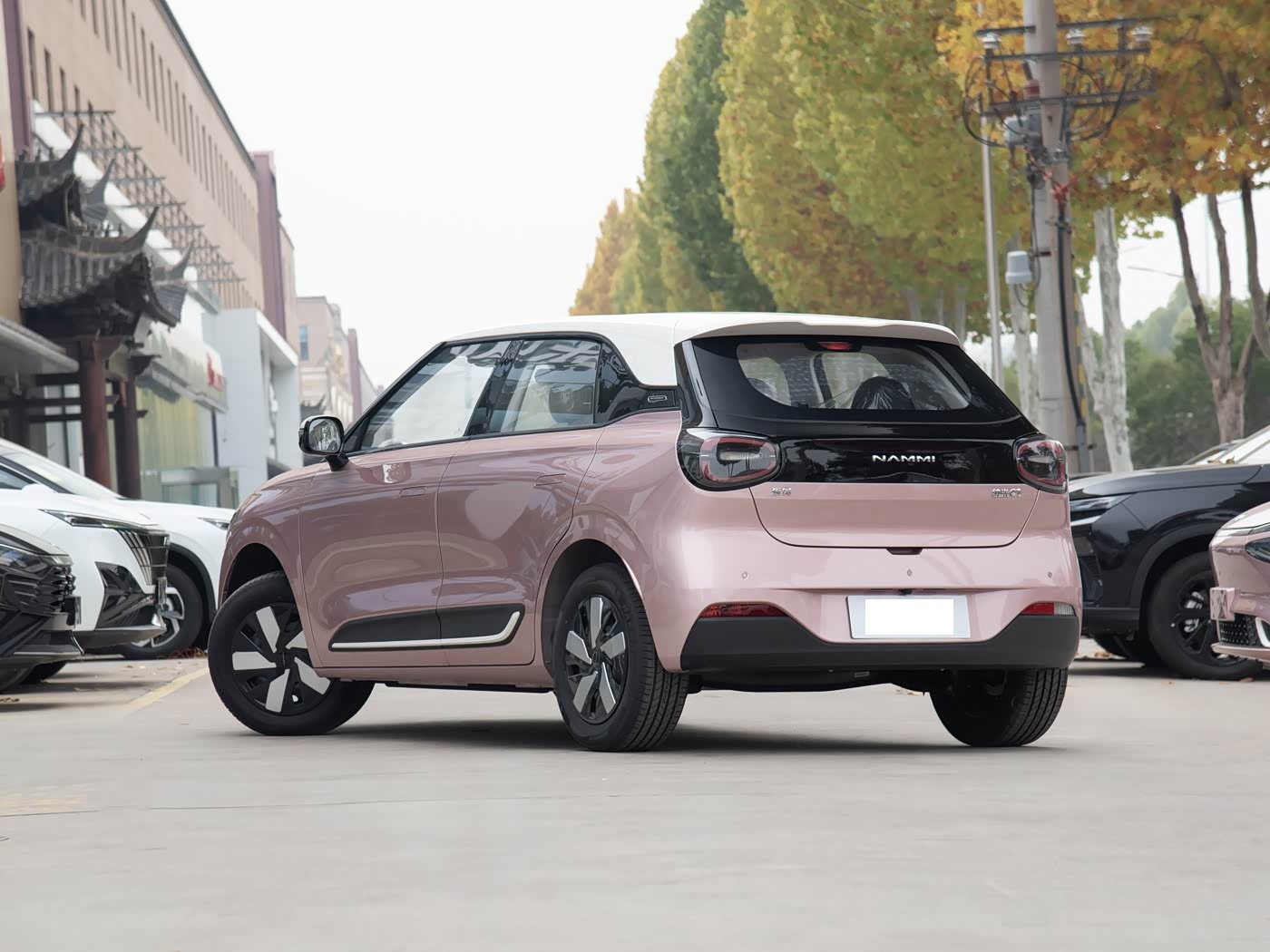 再来看车尾部分,车尾部分延续了整车圆润可爱的设计风格,3D立体尾灯采用熏黑灯罩搭配动态流水转向灯,点亮后效果出众,辨识度十足。车尾中央的“NAMMI”字母LOGO,进一步强化了品牌标识。黑色包围搭配银色护板,营造出跨界SUV的既视感,让车尾看起来更具层次感。整体来看,车尾设计简洁而不失精致,与车头、车身形成了呼应。