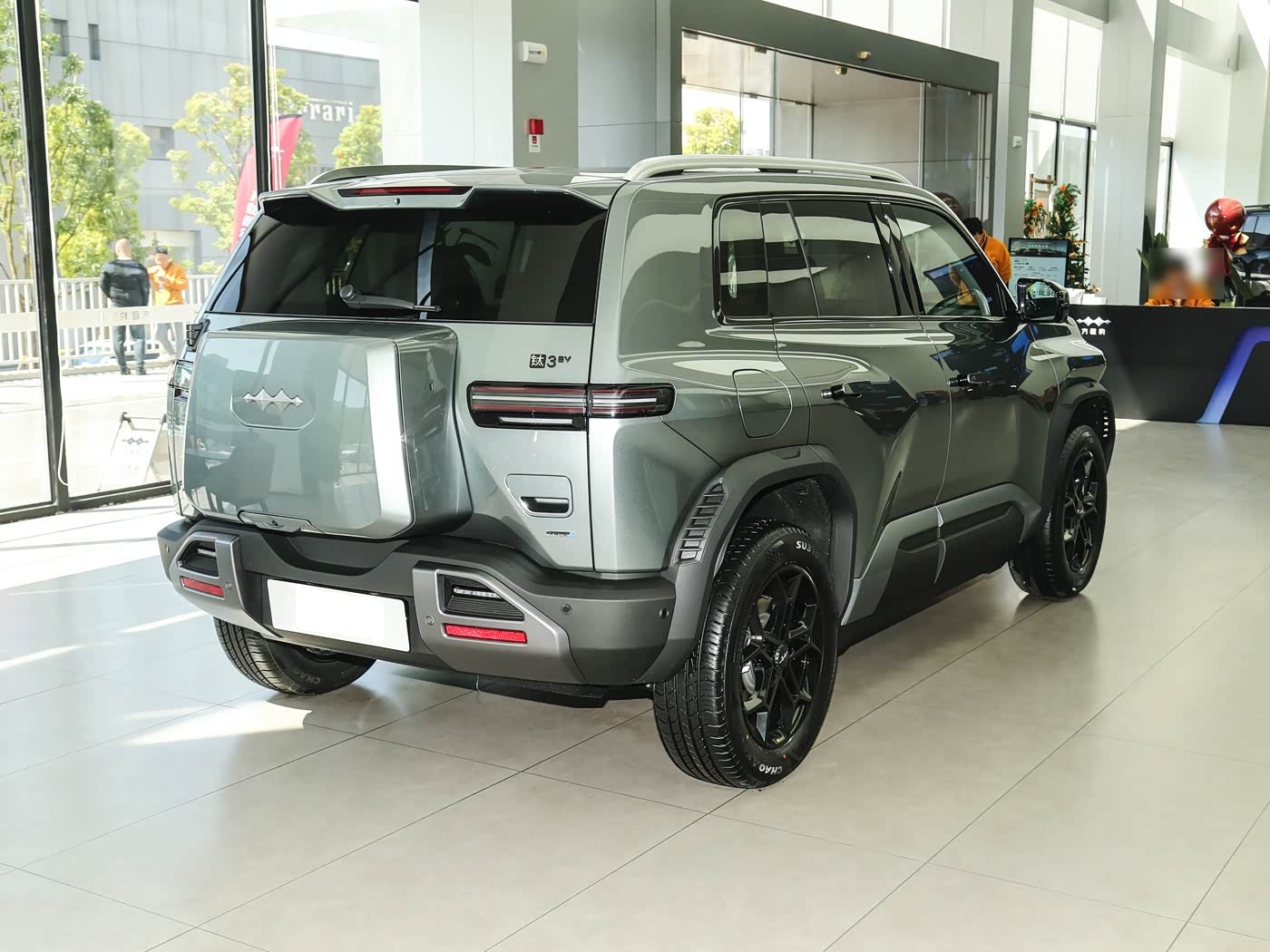 再来看车尾部分,方程豹钛3闪充版同样亮点十足。方形的轮廓、后飘式的双扰流板以及矩形的外挂式储物盒(俗称“小书包”),都是硬派SUV的经典元素,彰显了车辆的越野属性。横向布局的LED尾灯,与车头设计相呼应,进一步提升了车辆的辨识度。侧开式尾门设计,是硬派SUV的标志性配置,方便用户取放物品,同时也增添了一份独特的仪式感。值得一提的是,尾门左侧加入的“闪充”标识,成为了钛3闪充版的专属身份象征,凸显了其在补能技术上的领先优势。