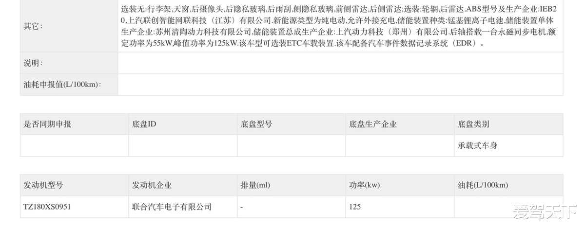 动力方面,MG 4X申报了高低功率两个版本,最大功率分别为150kW和125kW。