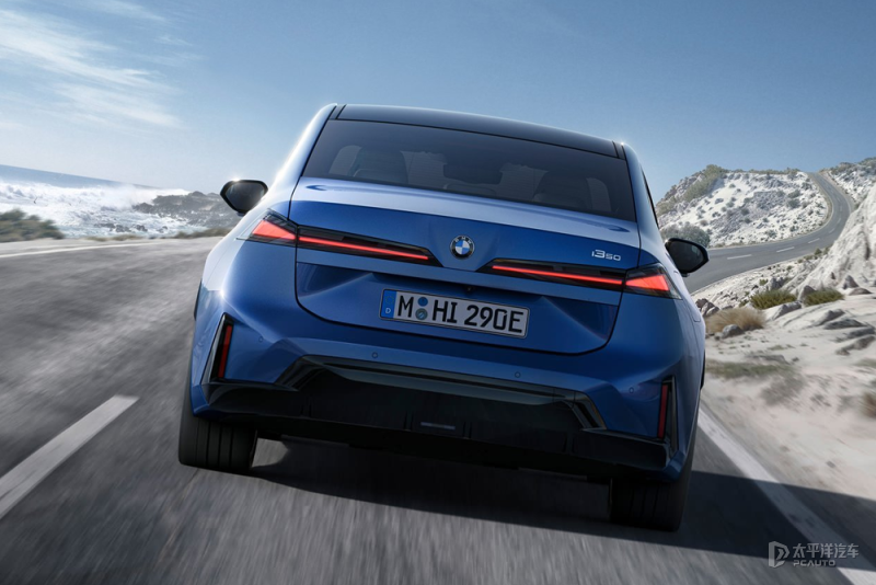 车身侧面设计延续了宝马经典的短前悬、长轴距以及霍夫迈斯特拐角三大核心元素,同时针对电动化特性进行了针对性优化。车门配备隐藏式门把手,配合流畅舒展的肩线与溜背式车顶造型,进一步降低了整车风阻系数,让车身姿态既保持了宝马标志性的运动感,又凸显了纯电车型的简约利落。