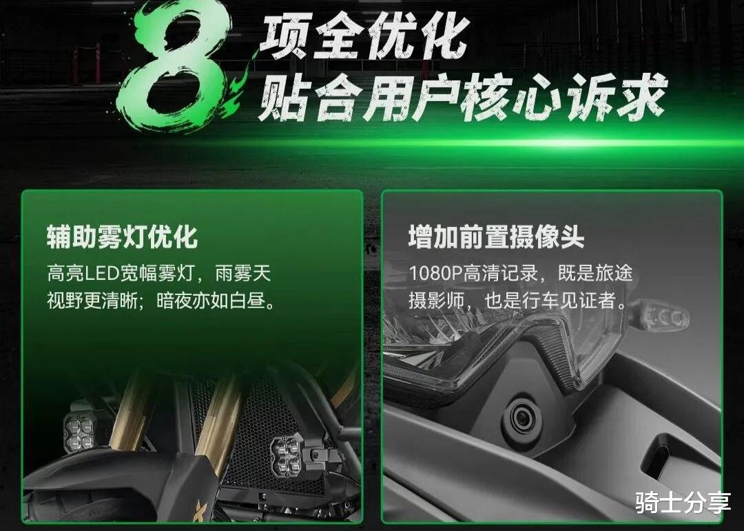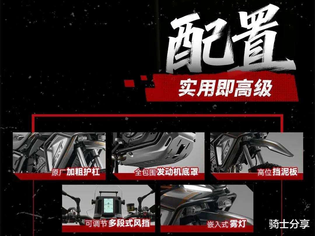 配置层面,这款车也会采用当下比较流行的竖屏TFT仪表,另还会有全车LED灯具、布雷博刹车卡钳、可关闭双通道ABS、TCS、原厂护杠、雾灯、发动机护板、高位挡泥板、可调风挡等贴心组合。