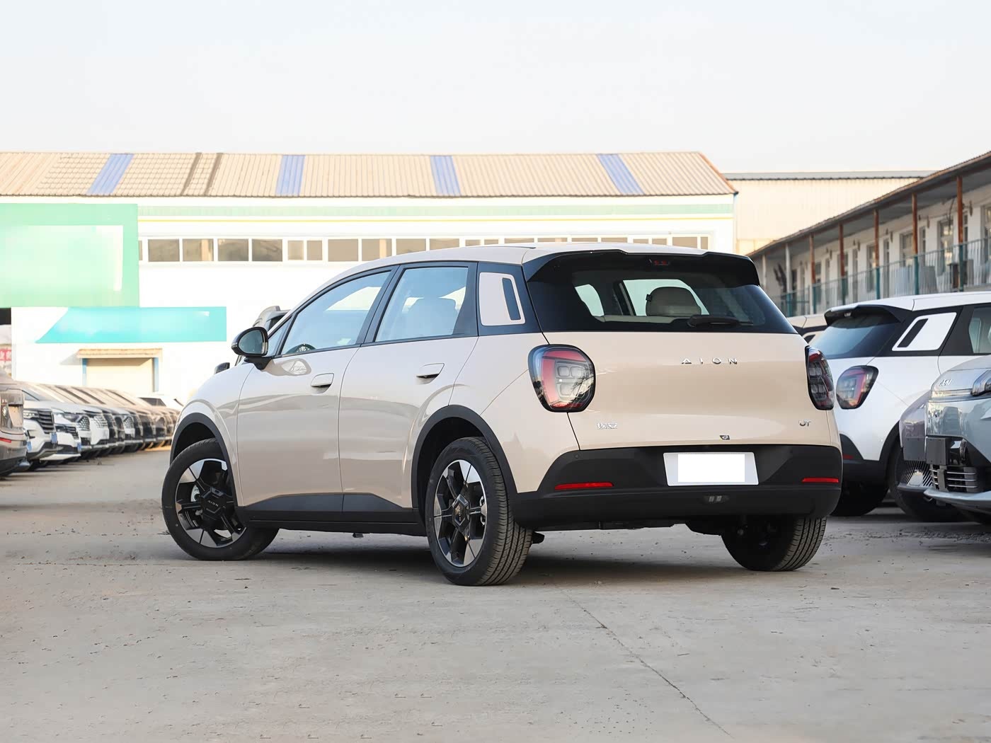 再来看车身侧面部分,AION UT super 2026款 sport版展现出优雅与动感的融合。4270×1850×1575mm的车身尺寸搭配2750mm的轴距,在保证车内宽敞空间的同时,也让车身比例更加协调。腰线从前翼子板出发,贯穿车门把手直至车尾,形成一条流畅的上扬曲线,搭配车顶微微下倾的设计,营造出向前冲刺的动态美感。车门下方的凹陷设计与五辐式刀锋造型轮毂相互映衬,进一步增强了车身的层次感与运动气息。半隐藏式机械门把手与双色轮圈的搭配,既降低了风阻,又提升了整车的精致感。