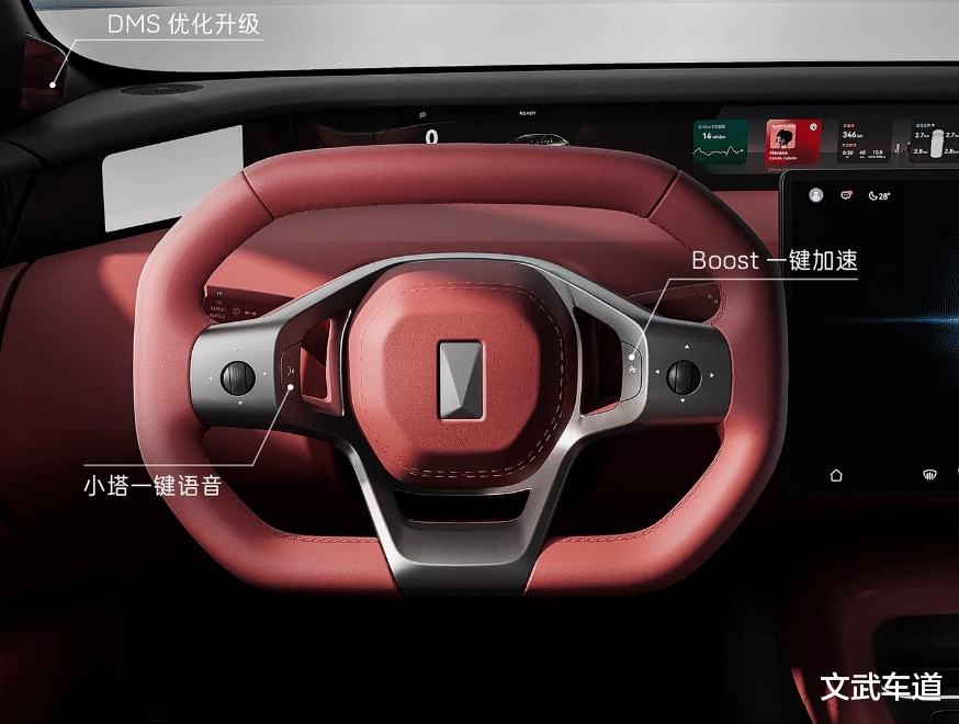 另外,针对之前车辆的槽点,新车也进行了一定的优化。比如说增加了车窗开关实体按键以及应急拉手。方向盘上也新增小塔一键语音和Boost一键加速按键,这样开车的时候对于盲操也更加友好。