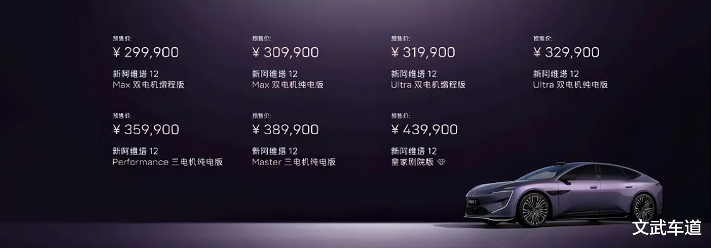 日前,新款阿维塔12正式开启预售,新车的预售价区间为29.99万到43.99万元,共推出了 7款车型,增程版车型的起售价为29.99万,纯电版为30.99万起。