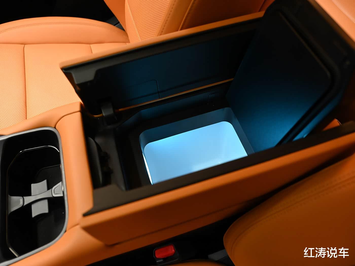 内饰方面,,哈弗猛龙PLUS中控台布局基本延续了2026款哈弗猛龙PHEV的风格,将越野和科技元素相融合,采用电子怀挡机构,换装新样式的多功能方向盘,配备全液晶仪表和悬浮式中控大屏,副仪表台是上下双层结构,提供50瓦手机无线充电、杯托、对开式扶手箱,打开扶手箱内部有车载冰箱。