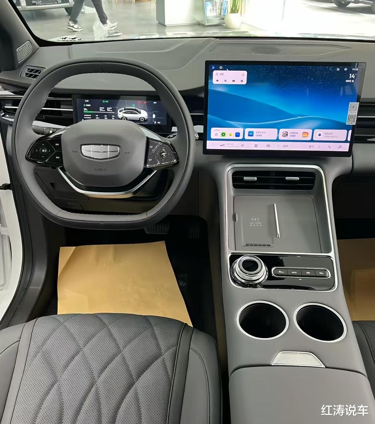 博越REV标配前排电动座椅和主驾座椅加热,高配车型可以享受到座椅按摩和通风以及副驾电动腿托,车内空间满足家用没问题,座椅填充厚实。