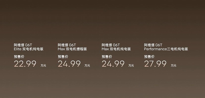 同样在这场发布会中,新款车型阿维塔06T也同时正式开启预售,该车定位“智美全场景运动轿车”共推出4款车型版本,预售价22.99万元—27.99万元。现在下订还可享2,000元意向金抵扣¥5,000元大定定金和阿维塔x宁德时代联名超薄磁吸充电宝,限量5,000份;