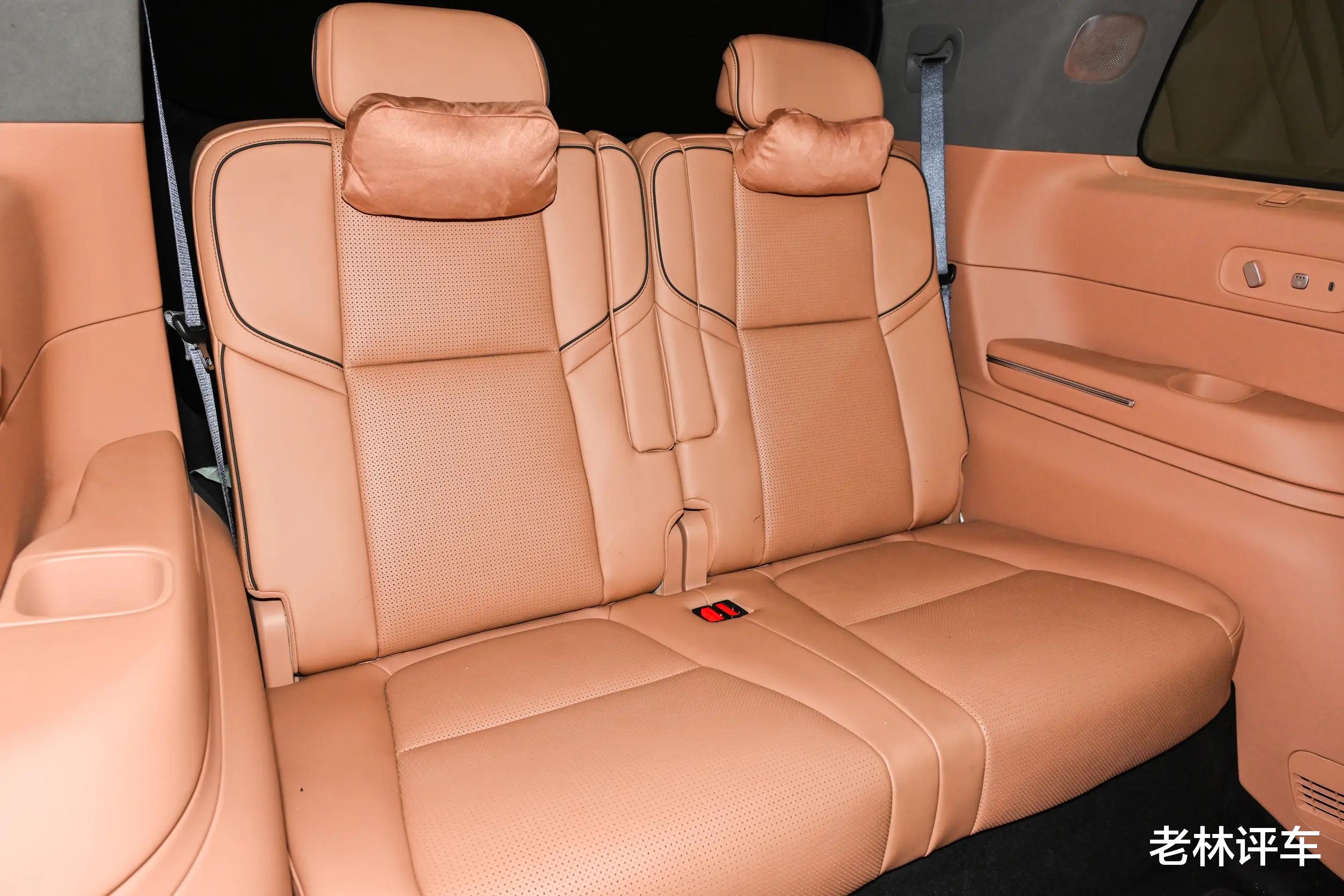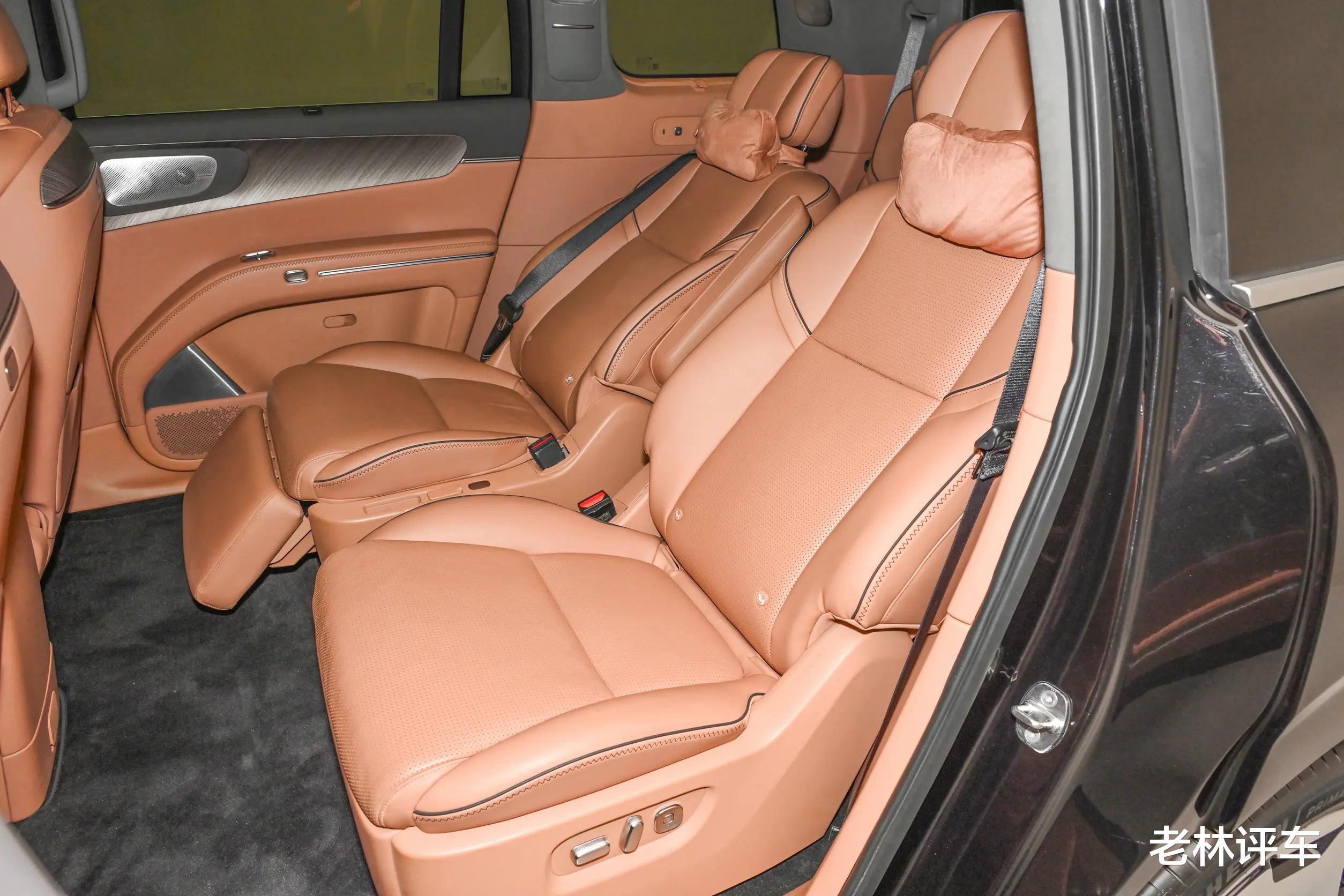第三排座椅的乘坐舒适性也不错,还支持座椅加热和靠背调节,腿部空间也不局促,即使满员乘坐,每个人都能悠然自得。