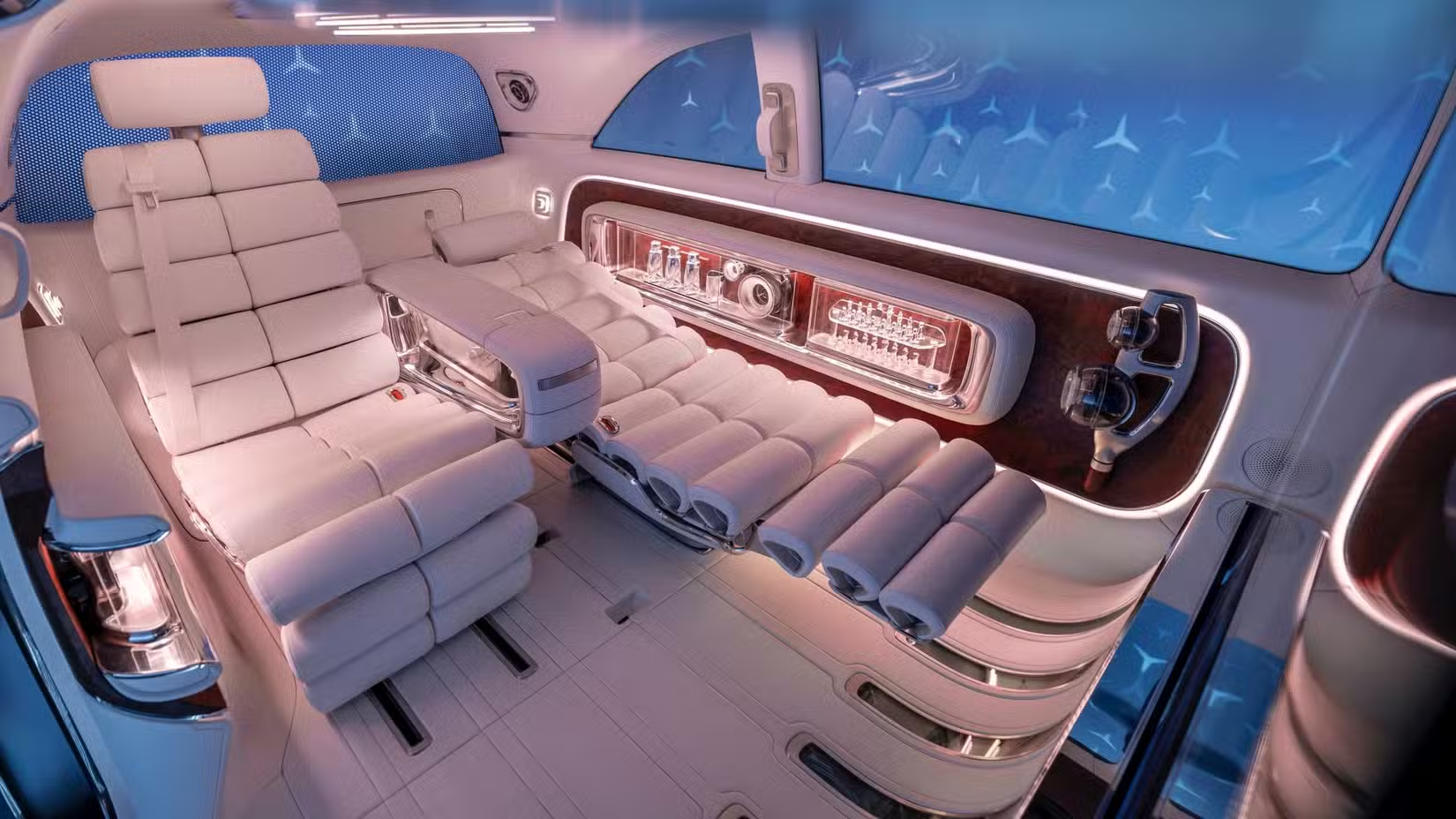 从尺寸来看,这台概念车车长接近5.8米,长宽高都逼近常规MPV的上限,碳纤维车身的它,算不上房车却比普通微型巴士庞大得多,气场完全碾压同期所有家用MPV。