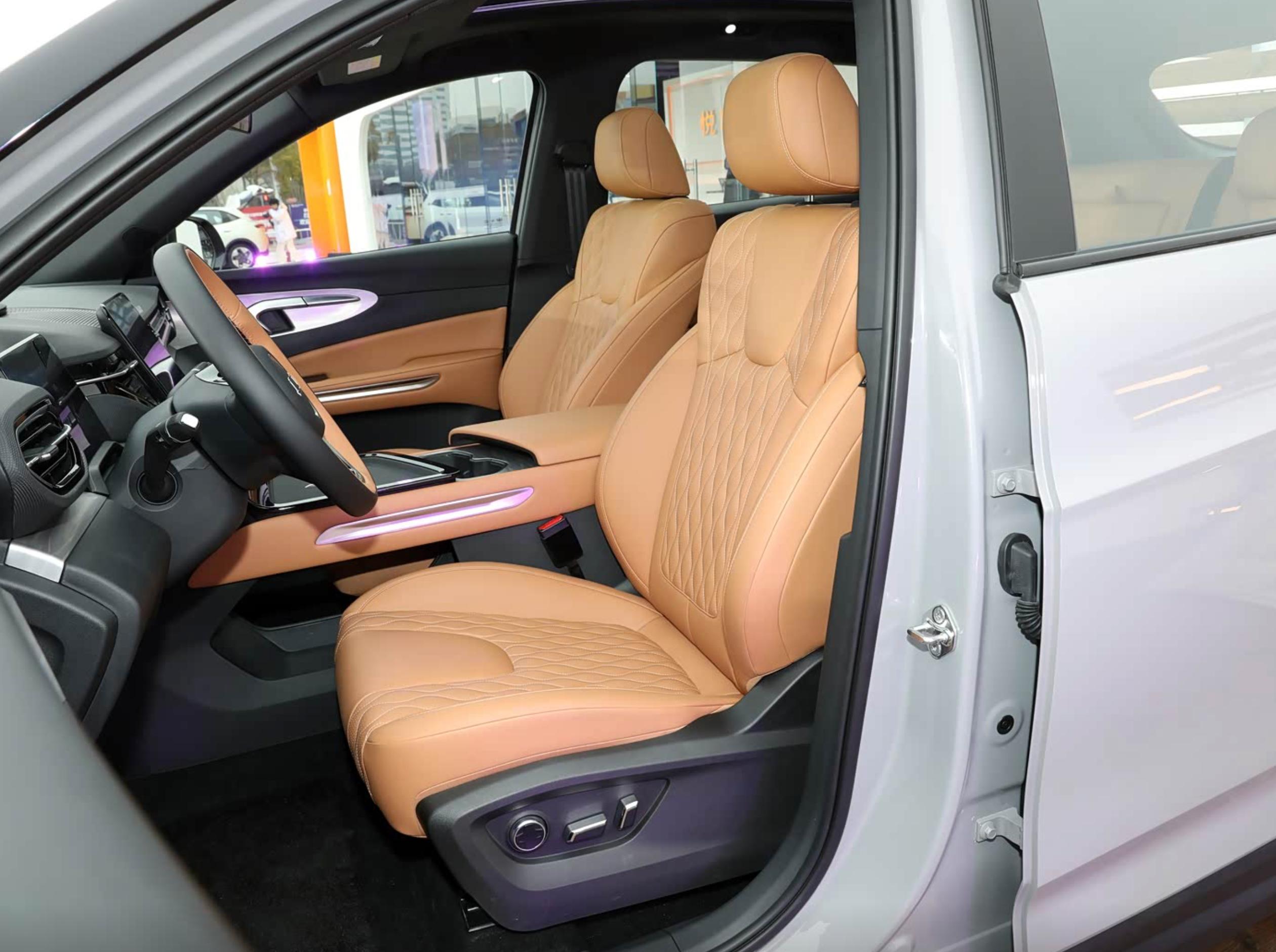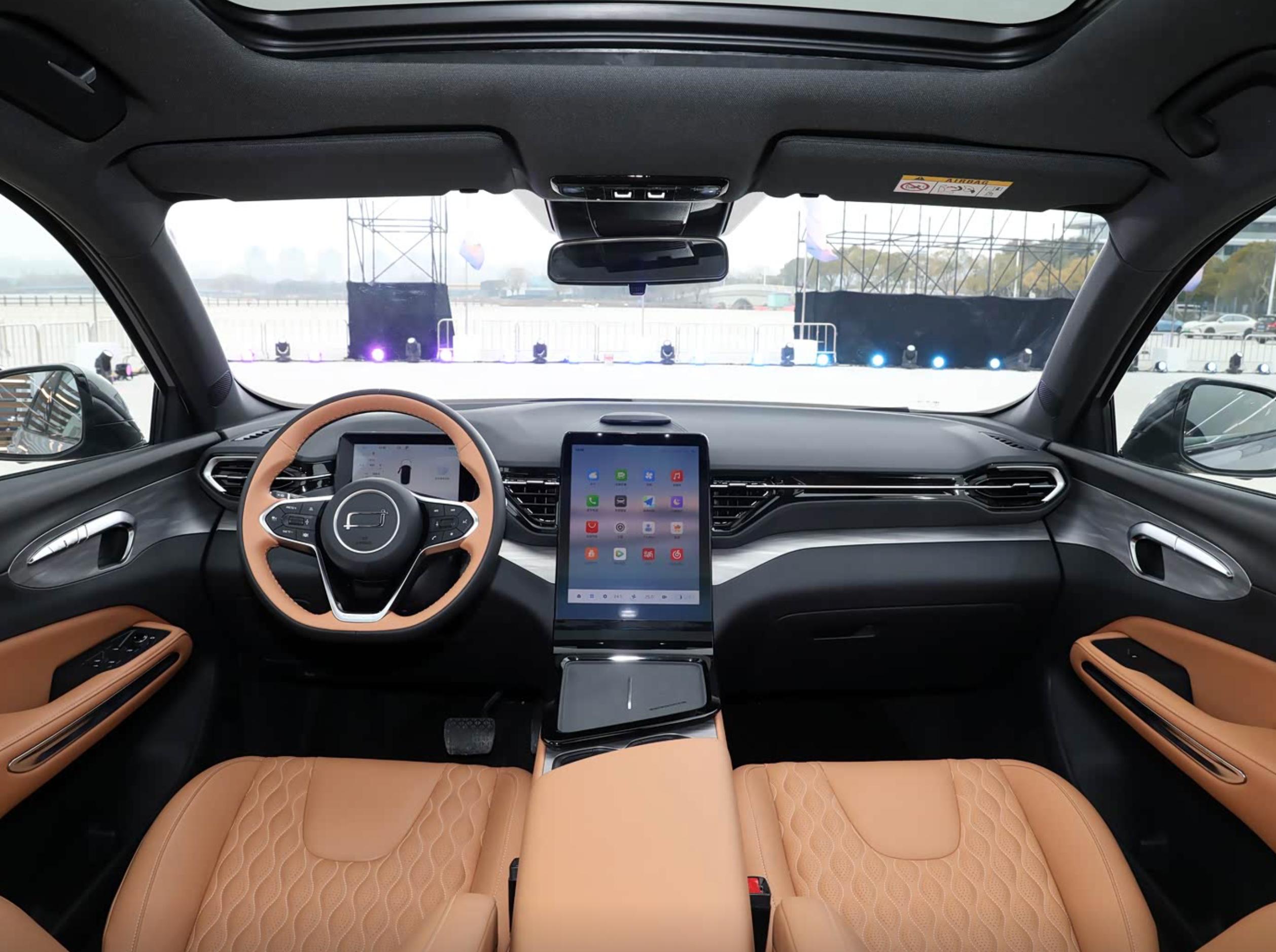 先说动力。悦意07为插电混SUV车型,发动机部分为1.5T,最大功率110千瓦,搭配一个168千瓦驱动电机,电池电芯来自瑞浦兰钧的磷酸铁锂,容量根据配置不同分为21.2度与30.9度两种,CLTC纯电续航分别为150公里与210公里,综合续航1500公里和1555公里。