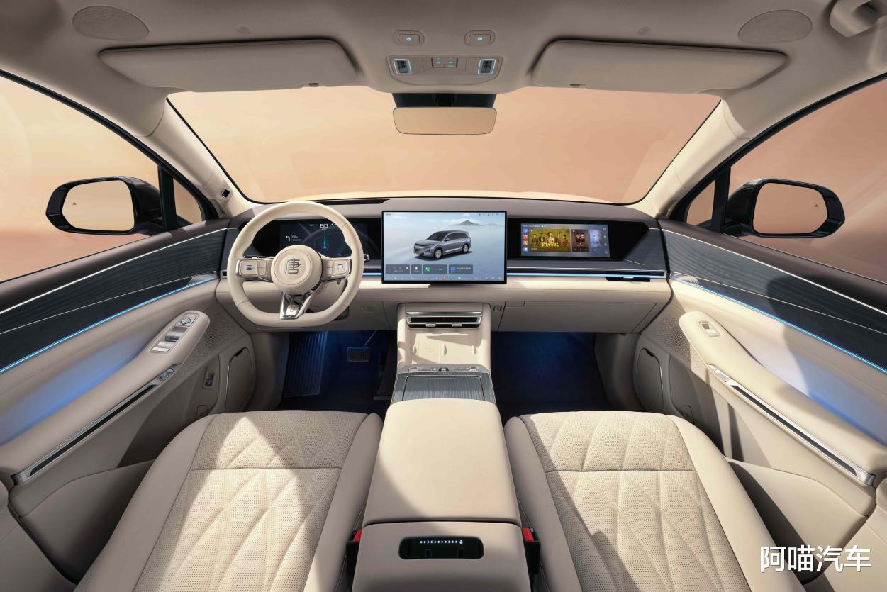 再一个重点,就是空间。大唐采用了“2+2+3”七座布局,这种布局在SUV里并不算常见。它最大的好处,就是第二排舒服得多,不再只是传统大七座那种凑合能坐的思路。独立座椅、腿托、加热、通风、按摩这些配置都安排上了,第三排也不只是拿来应急。换句话说,它不是单纯做了一台能装下七个人的大车,而是想让每一排都尽量坐得舒服。对于一家老小出门、自驾游,甚至偶尔兼顾商务接待,这种思路明显更讨用户喜欢。