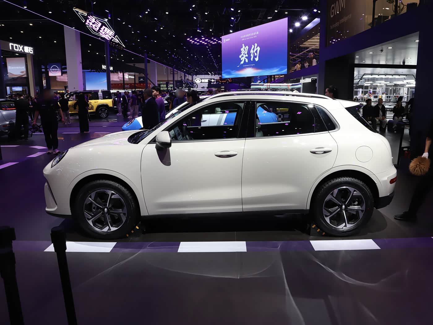 再来看车身侧面部分,车身尺寸4471×1833×1641mm,轴距达 2720mm,紧凑型 SUV 身形却有越级轴距表现。侧面线条流畅舒展,上扬腰线贯穿首尾,搭配悬浮式车顶与熏黑 B/C 柱,视觉上更显修长。18 英寸 “飞花逐月” 四叶草轮毂造型别致,兼顾美观与低风阻,传统机械式门把手实用可靠。车身姿态饱满稳健,车高 1.64 米保障头部空间,车宽 1.83 米提升横向舒适度。全系标配高强度铝合金车顶行李架,承重达 50kg,可搭载自行车、行李箱等户外装备,拓展实用性。