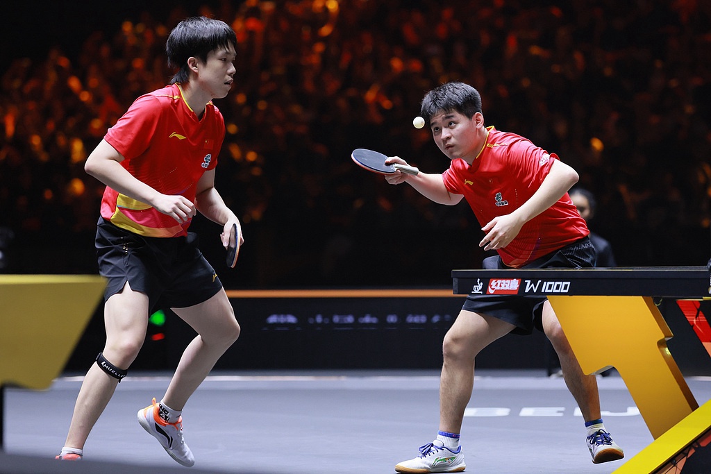 正赛第六个比赛日,在男双比赛开始前,林诗栋刚刚打完一场男单比赛,以4比0横扫日本选手宇田幸矢,闯进男单4强。稍作调整后,林诗栋随即与王楚钦投入到男双半决赛中,他们的对手是实力不俗的黄友政/温瑞博,后者持外卡出战,在前两轮比赛中连续击败了多组种子选手。此役,双方多次上演精彩对攻,经过四局较量,王楚钦/林诗栋3比1获胜晋级。