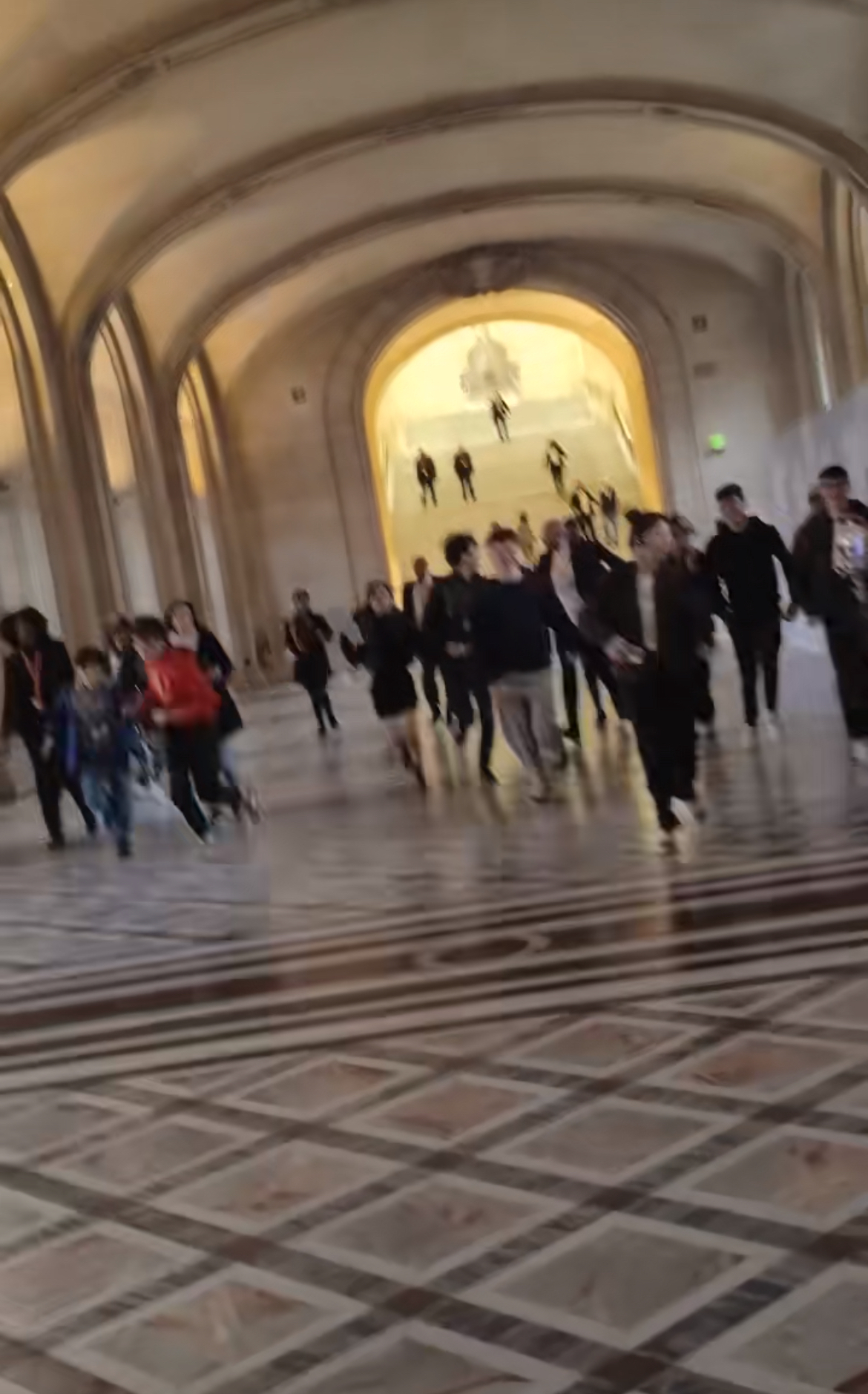 参观完胜利女神雕像后,突然有四五个大个子保安神色慌张,一边跑一边大喊,“快往外跑,快跑,快跑”,他们神色很紧张,导致游客都很慌张,拼命往外冲。他们不知道里面发生什么事情,韩先生感觉到,保安的示意是里面很危险,大家都很人心惶惶。
