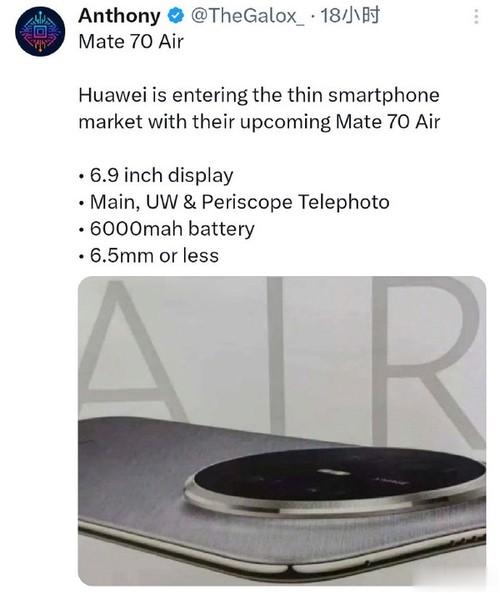 华为Mate70Air真的要来了!日前,有华为经销商表示,华为Mate70Air这款产品应该会在这两天公布,并且海报也被放到了网上。