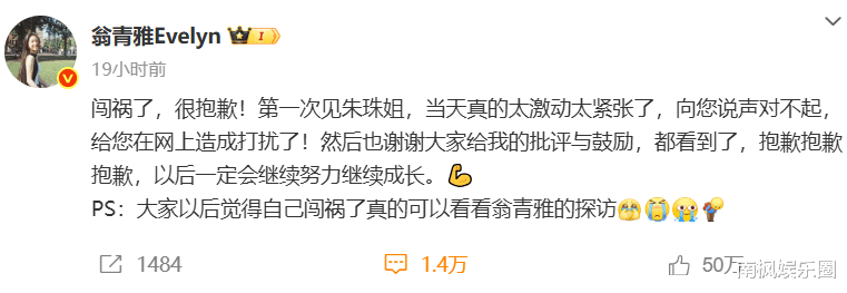 最让人绷不住的是,眼看着翁青雅实在是采访不下去,于是又请了个“外援”。