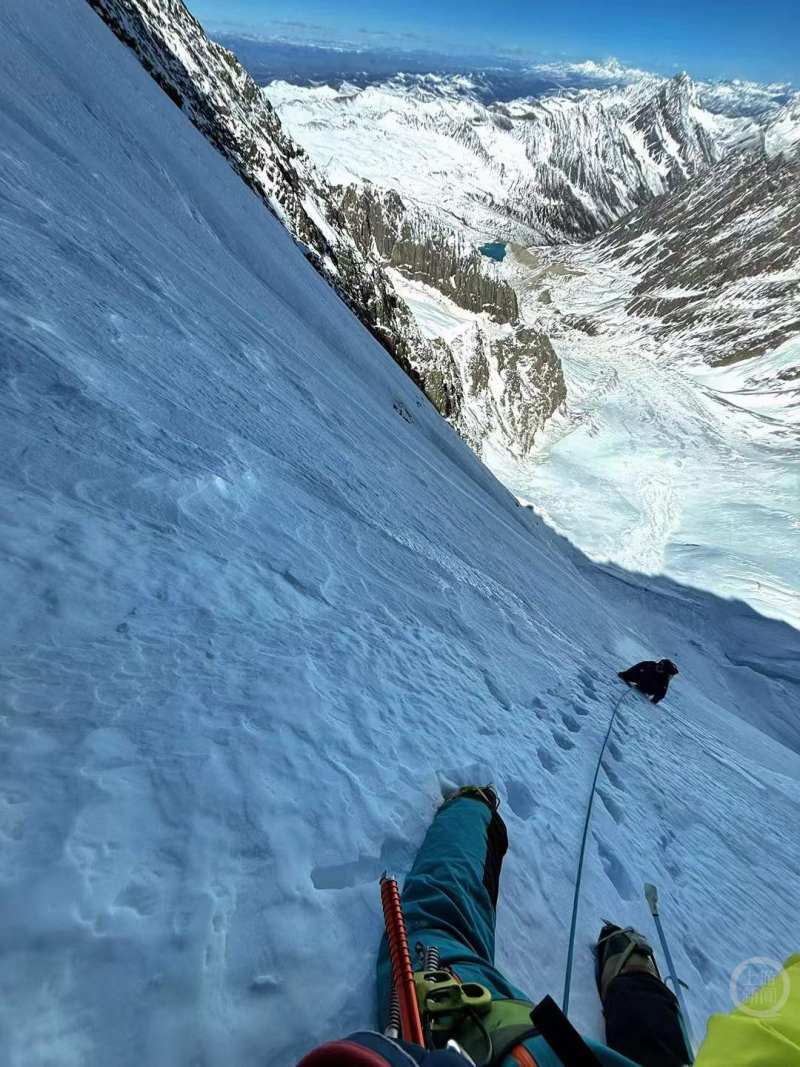 据朱先生讲述,11月4日,他与搭档(陕西人,在北京长大在昆明上班)进入勒多曼因山区,从勒多曼因北壁一条全新的路线攀登,7日19时成功登顶,随后开始下撤。在下撤最后一段路线中,因地形复杂无法建立保护站,他们采用双人结组下降,就是在这过程中,发生滑坠事故,“垂直坠落200米”后两人掉进了冰裂缝中,朱先生右腿骨折,搭档双腿骨折。