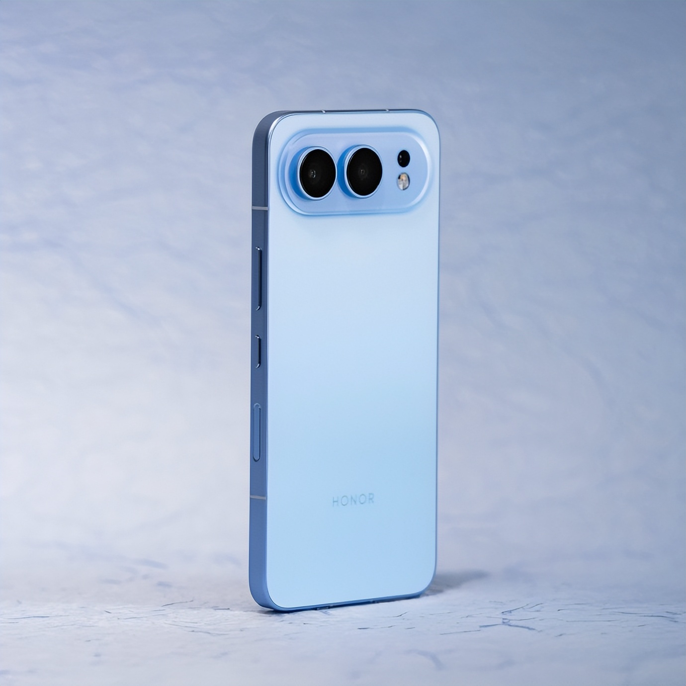 博主数码闲聊站分享了一张亮蓝色标准版荣耀500的实拍图。这款高颜值配色此次似乎借鉴了苹果iPhone 17的设计语言:背面同样采用贯穿机身上部的条形摄像头模组,模组两侧泛着金属光泽。