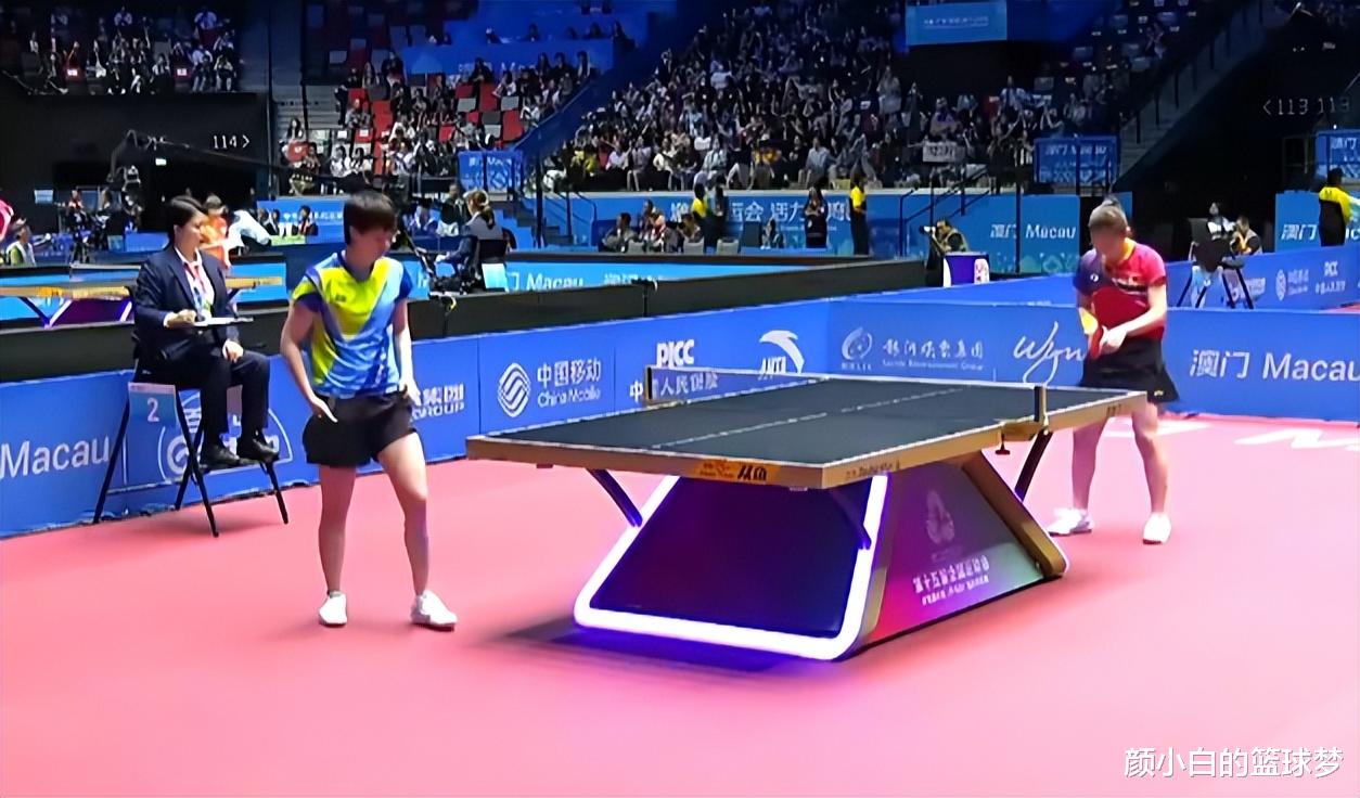 第三局开场王曼昱是5-1领先,陈梦与王曼昱去擦汗的时间过长,裁判还催促两人赶快回到比赛,陈梦连拿2分后王曼昱一波6-0直接带走比赛11-3。