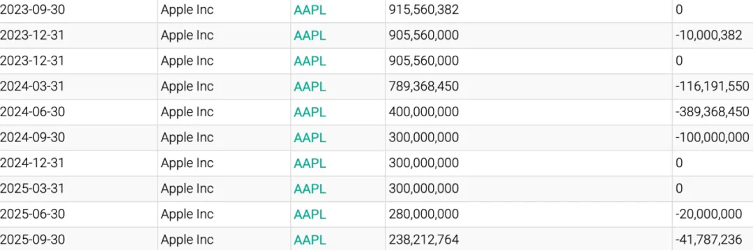 截至三季度末,伯克希尔已经连续12个季度净卖出股票,其中最受关注的是对苹果公司的减持。