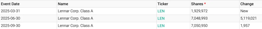 截至三季度末,伯克希尔持有约705万股莱纳股票,二季度时该公司对莱纳的增持幅度高达265%。莱纳是美国最大的住宅建筑商之一,截至11月14日,该公司股价在过去一年下跌超过22%,但目前在伯克希尔的投资组合中所占比例略低于3%。