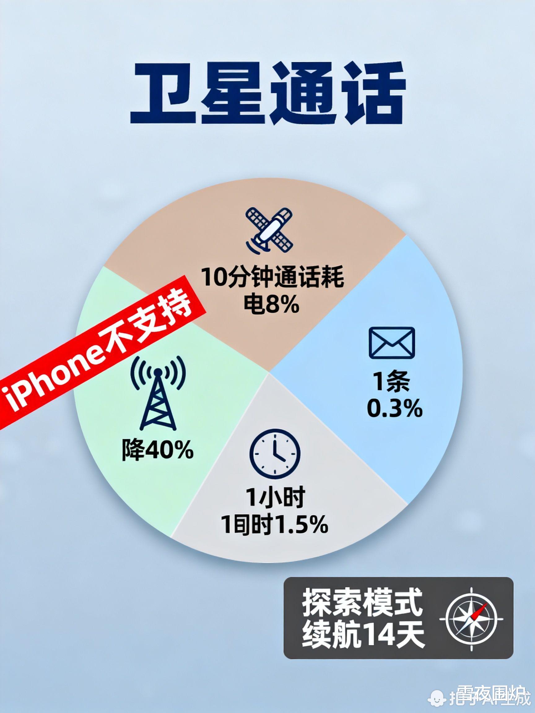 连续卫星通话10分钟,耗电8%(iPhone不支持此功能)