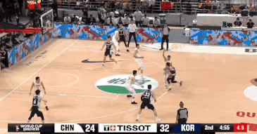 开局第一个回合,周琦便在内线完成得分,但中国队的进攻效率并不高,韩国队在缠斗之中连续得分,取得10比3的开局优势。