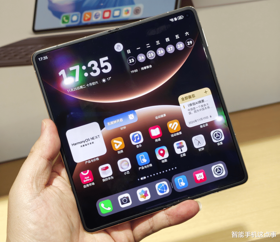 Mate X7也更轻更薄了,整机重量只有235克,展开厚度4.5mm,折叠起来9.5mm,比上一代明显更便携,拿在手里长时间用也不会觉得累。