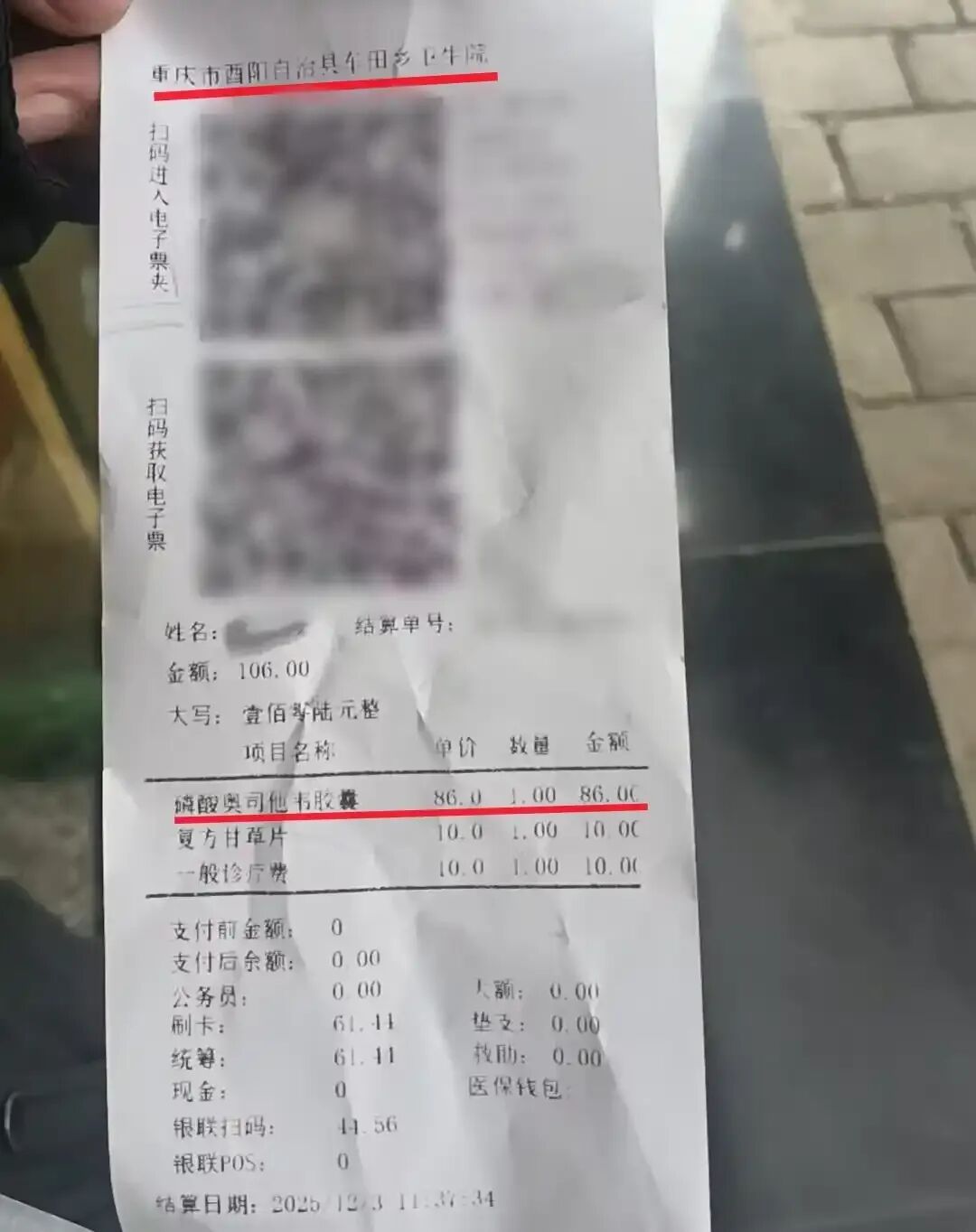 酉阳县卫健委工作人员回应称,药品不由他们定价,目前他们已得知车田乡卫生院一盒磷酸奥司他韦胶囊卖86元的事,正在进一步了解中。