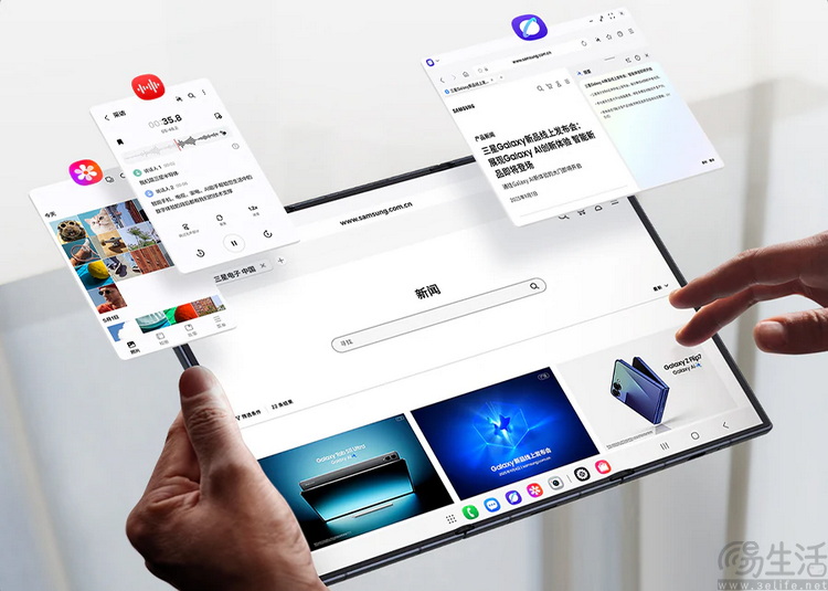 除了强大的多任务特性,最新的AI特性同样也是Galaxy Z TriFold的一大亮点。三星招牌的Bixby助手在这款三折叠手机上升级了多模态AI能力,它不仅支持文字、语音命令,也能识别屏幕上的内容,新的“语聊视界”功能还可以借助摄像头,让用户直接就当前所见的任何内容提出问题、并实时获得帮助与建议。
