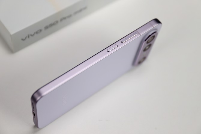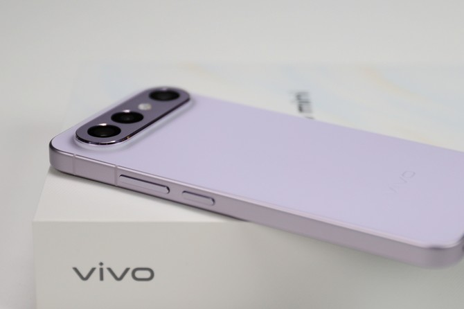 机身背部的工艺更是点睛之笔。vivoS50Promini采用了缎面柔光玻璃材质,配合纱缎光刻工艺,在微米级的纹理层上布满千万个点阵光栅。轻转手机时,能看到紫色光影如纱缎般流动,细腻又灵动,相比传统AG玻璃,不仅视觉上更显高级,触感也丝滑温润,还能有效抵御指纹,冬天抹完护手霜握持也依旧清爽。航空级铝金属中框经过细腻喷砂处理,与背部玻璃自然过渡,侧边的圆润R角设计贴合手掌曲线,长时间握持也不会有硌手之感。