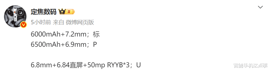 而且据爆料,Ultra版将搭载“5000万像素RYYB可变光圈主摄+5000万像素潜望长焦+1300万像素超广角”的三摄组合。